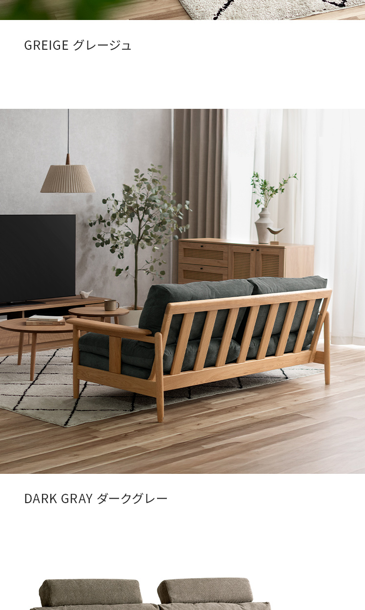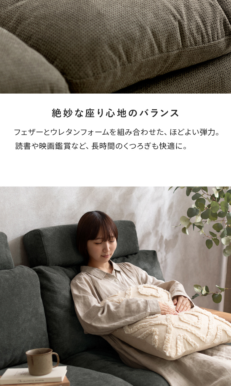 ◇ヘッドレスト付き ハイバックソファ 2人掛け 3人掛け フェザー ウレタン ナチュラル シンプル グレージュ ダークグレー【公式限定|いつでも3%OFFクーポン対象】