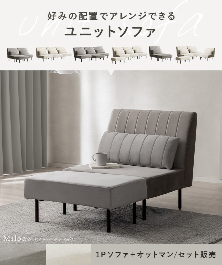 【1Pソファ+オットマンセット】自由に組み替え ユニットソファMiloa〔ミロア〕