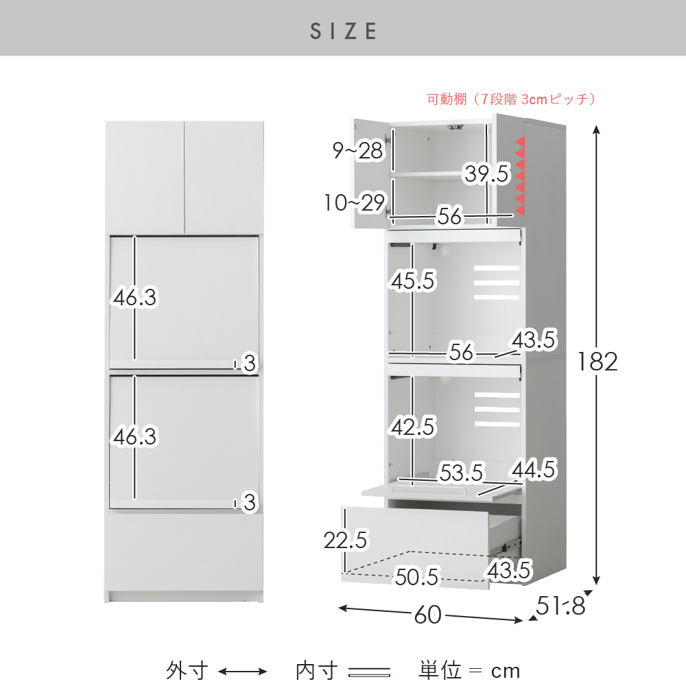 レンジ収納内寸 | 約幅56×奥行き43.5×高さ45.5cm |