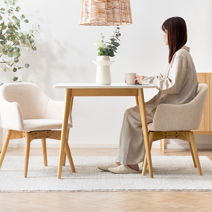 ダイニングテーブル Aria〔アリア〕スクエアタイプ/無駄をそぎ落としたミニマルなデザインで、コーディネートに映えるダイニングテーブル“Aria(アリア)”ラウンド・スクエアから選べる2タイプの天板と5つのカラーで、空間に合わせたスタイルが叶います。