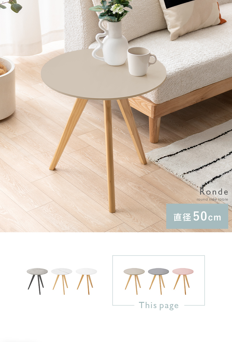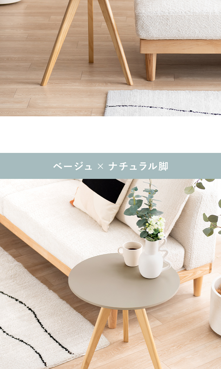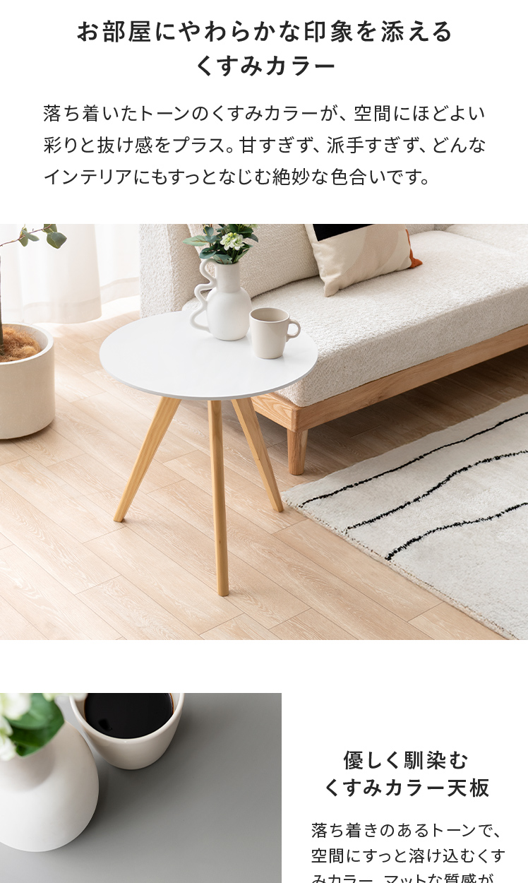 くすみカラー ナチュラル ラウンドテーブル カフェテーブル 天然木 木目 三本脚 テーパー 円形 コンパクト ベージュ グレー ピンク【5%OFFクーポン対象|公式なら毎日お得】