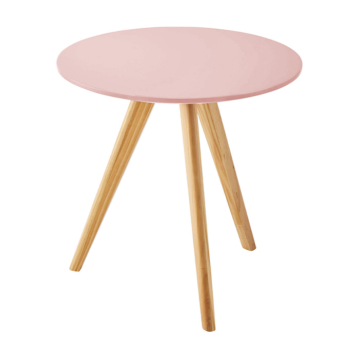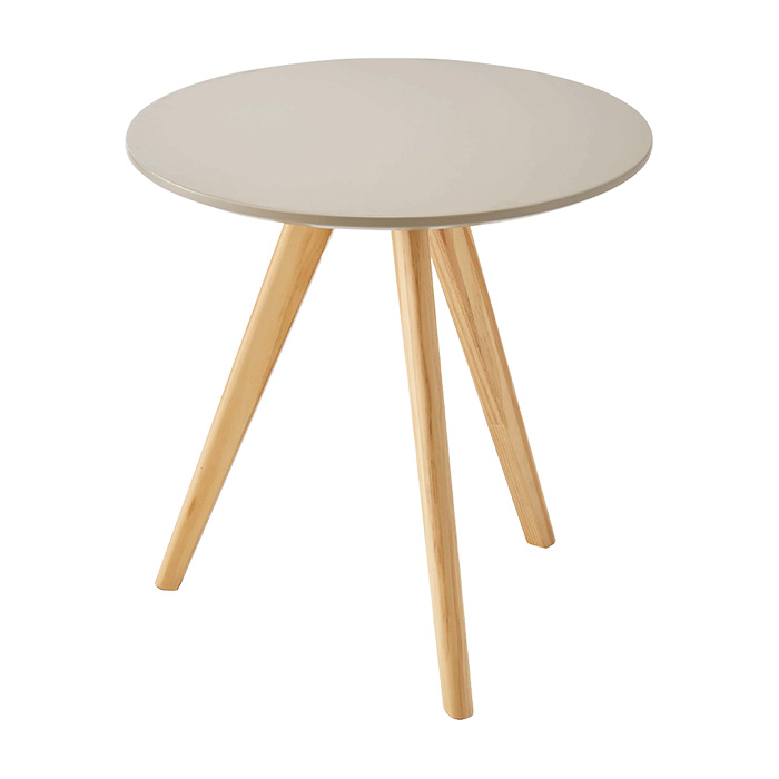 くすみカラー ナチュラル ラウンドテーブル カフェテーブル 天然木 木目 三本脚 テーパー 円形 コンパクト ベージュ グレー ピンク