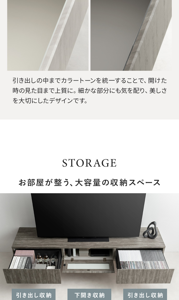 テレビ台 木製 収納家具 モダン ウッドインテリア テレビラック リビングボード 日本製 扉収納 引出し ルーター収納 スリット付き フラットデザイン ボックスフォルム ワイドサイズ グレー【5%OFFクーポン対象|公式なら毎日お得】