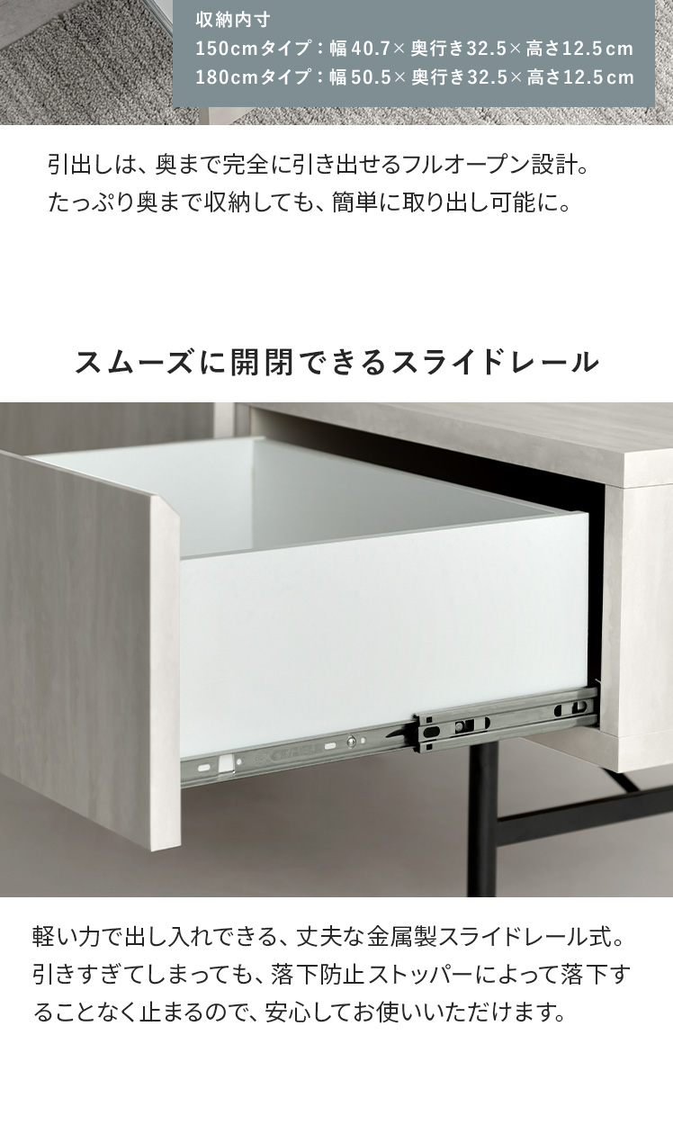 | 引き出し収納内寸 | 約幅50×奥行き32.5×高さ12.5cm |