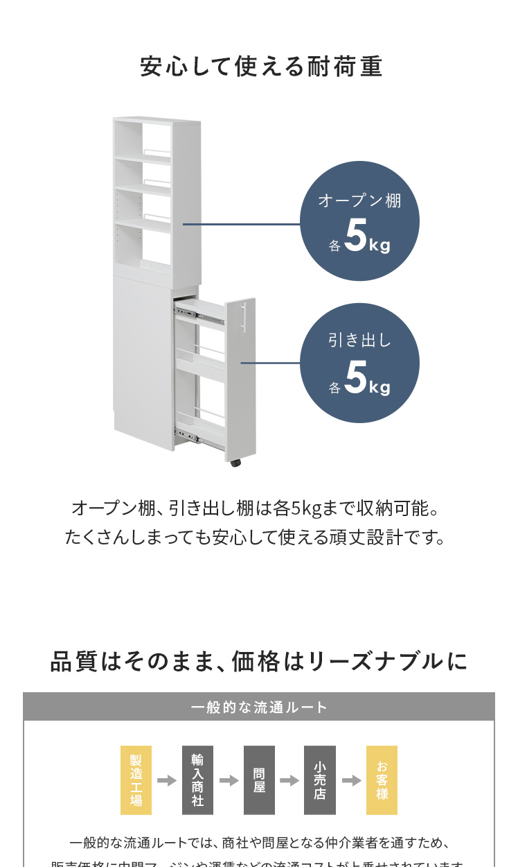 隙間収納 キッチン収納 キッチンラック 省スペース 縦型 大容量 スリム 奥行き50cm オープン棚 引き出し収納 シンプル ホワイト【5%OFFクーポン対象|公式なら毎日お得】