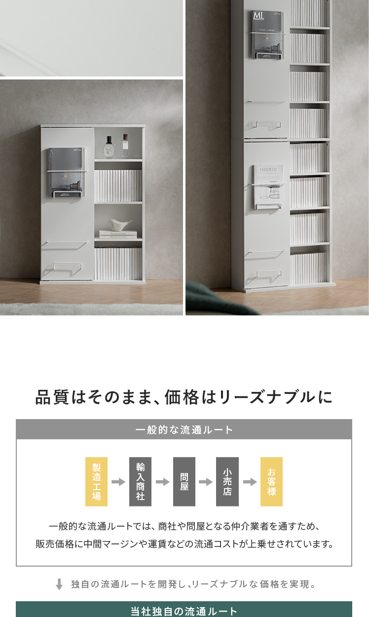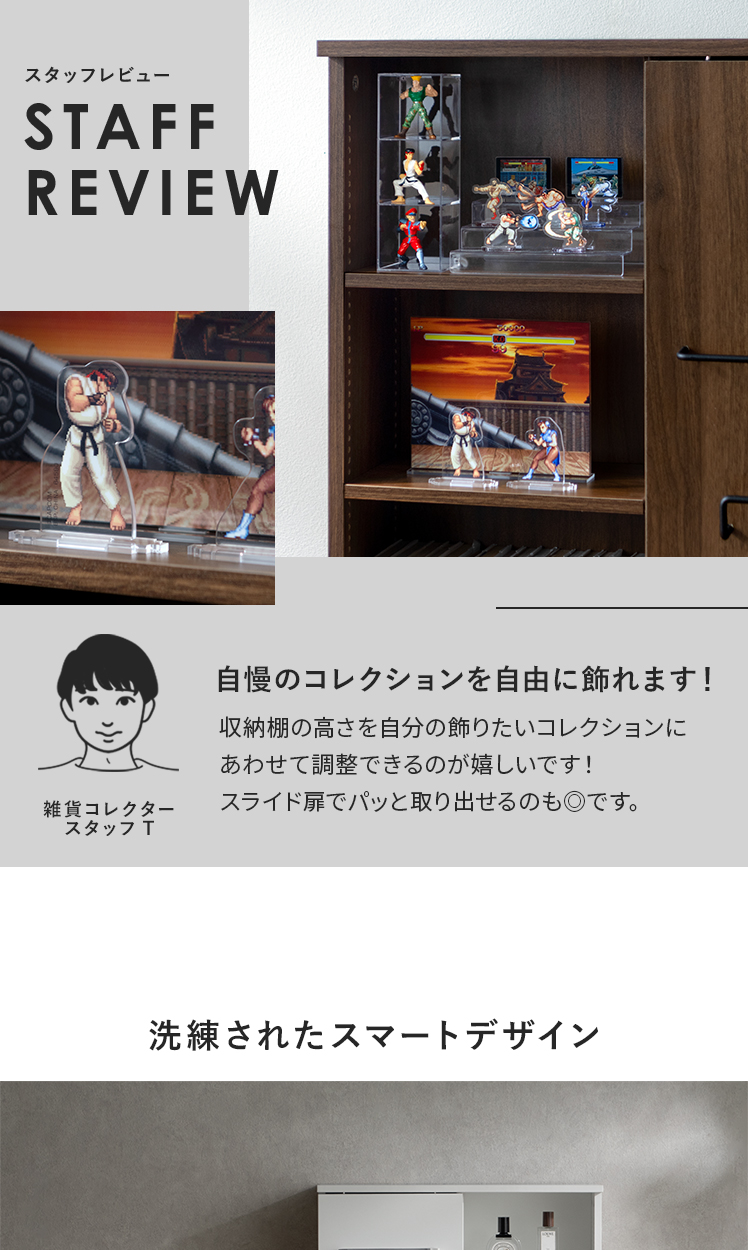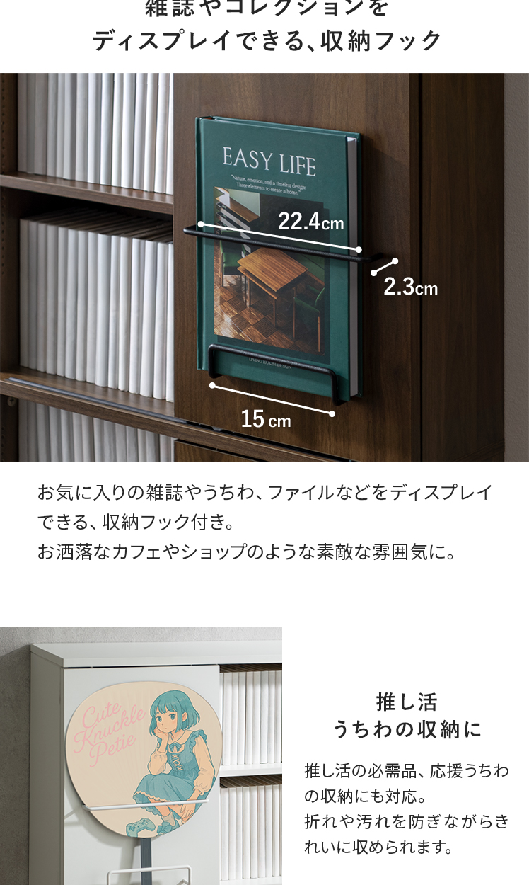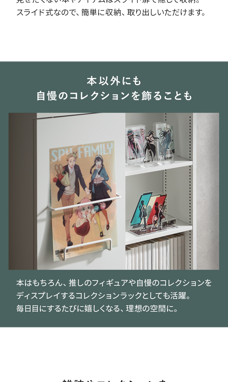 ブックシェルフ Livina〔リヴィナ〕ハイタイプ/魅せると隠すを使い分ける、ブックシェルフ “Livina(リヴィナ)”スライド扉で見せたくないアイテムはすっきり隠し、大切な本やコレクションは美しくディスプレイ。シンプルなモダンデザインで、空間を洗練された印象に。