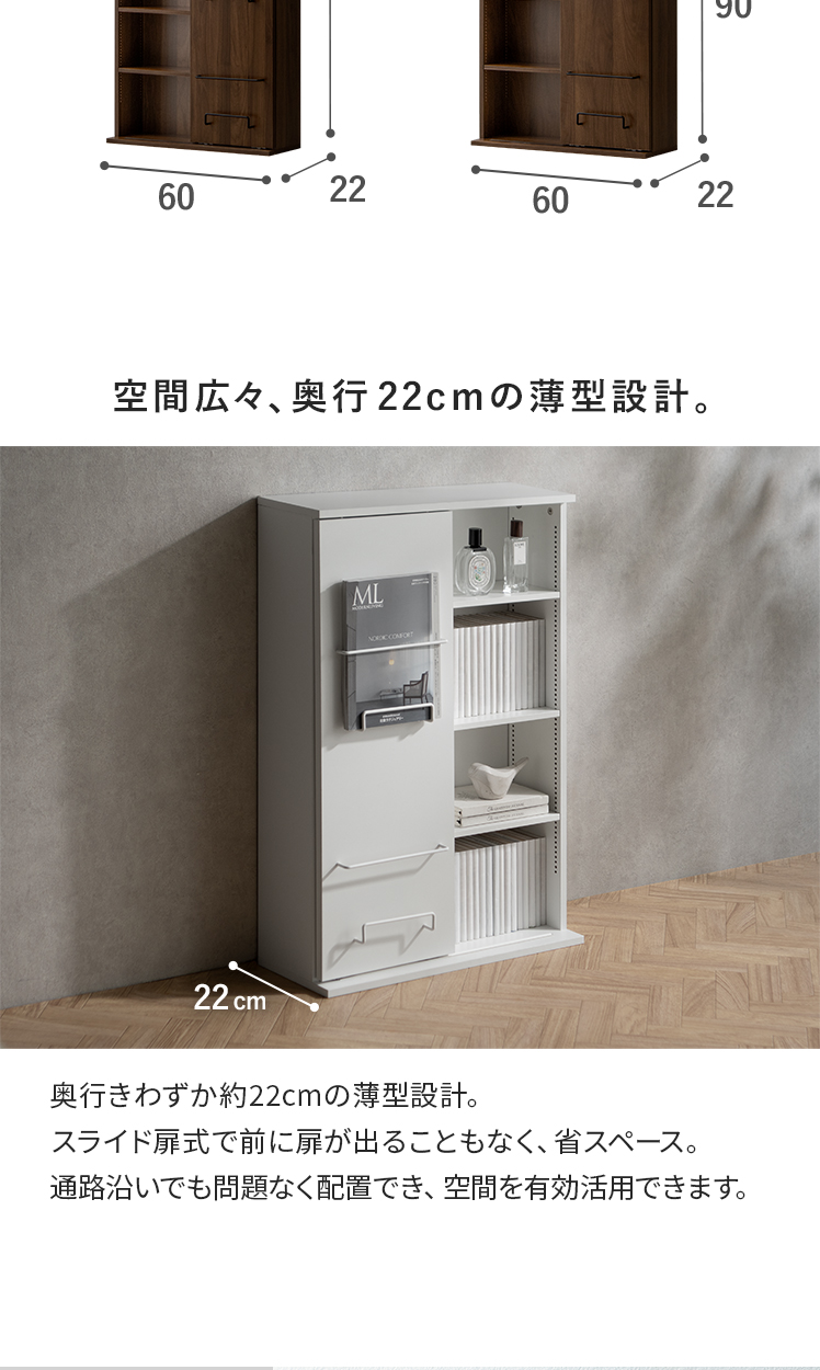 | サイズ | 約幅60×奥行き22×高さ178.6cm |