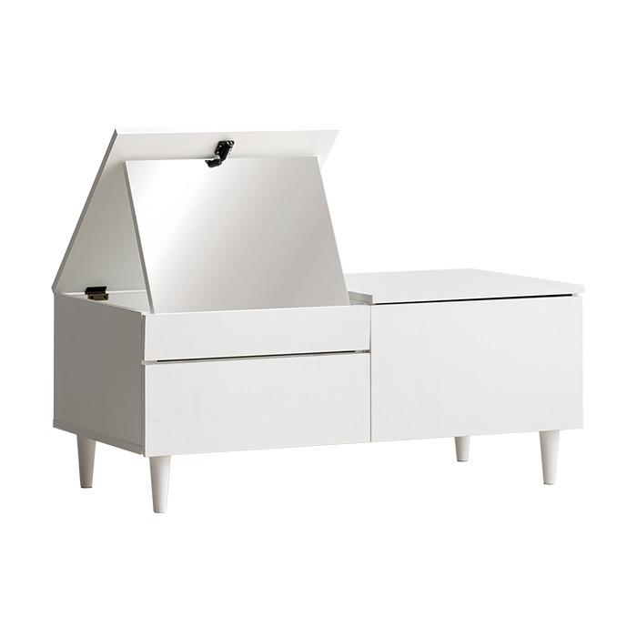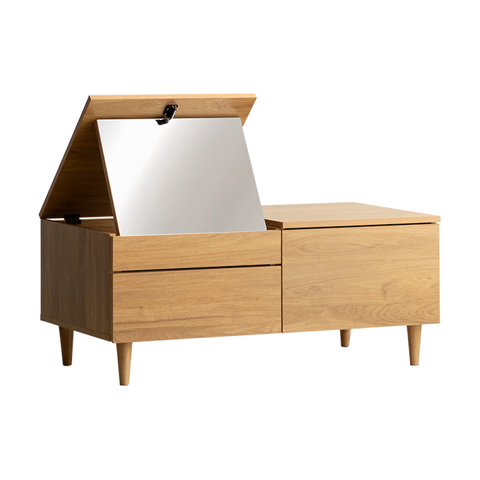 ドレッサーテーブル FLECT〔フレクト〕/コンパクトで置きやすい1台2役の快適ドレッサーテーブル。トレーとしてそのまま使える収納スペースや、角度調整できる大きなミラーなど、煩わしさを解消する快適設計です。どこから見ても美しい、細部にまでこだわった上質なデザインも魅力。