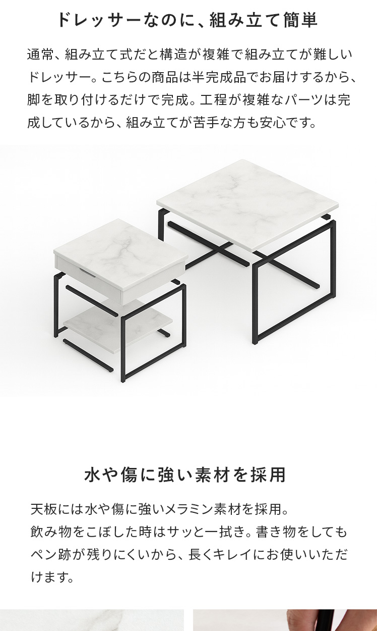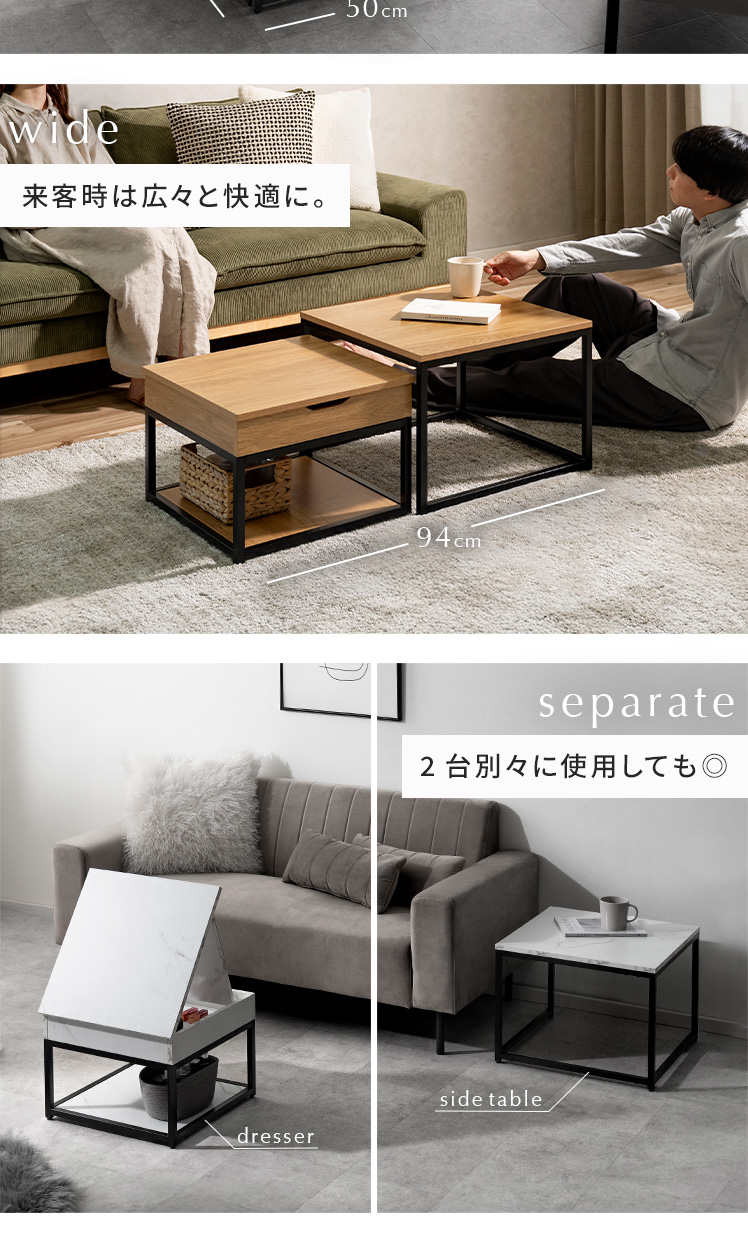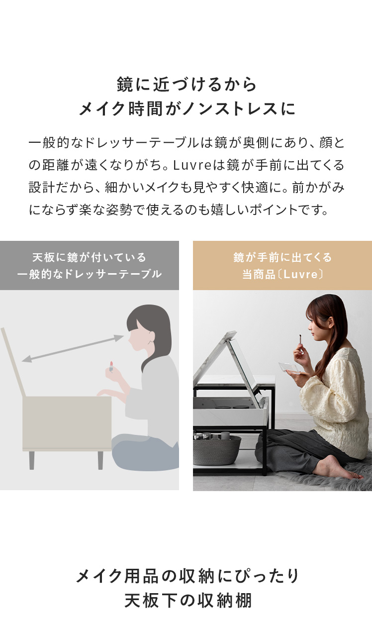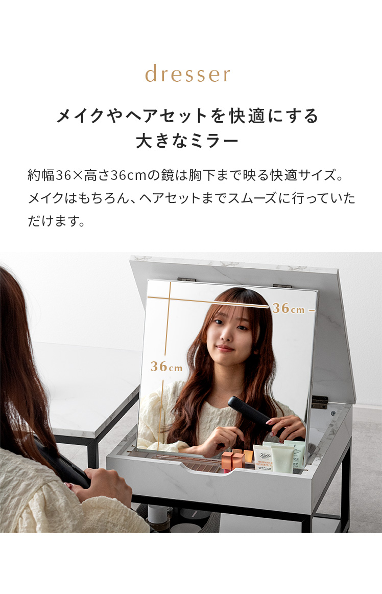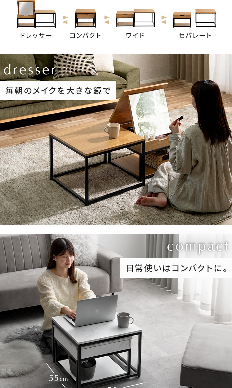ドレッサーテーブル メイク収納 鏡台 化粧台 リビングテーブル ローテーブル センターテーブル ミラー シンプル モダン 北欧 木目 コンパクト セパレート 大理石調 ホワイト 白 ナチュラル【公式限定|いつでも3%OFFクーポン対象】