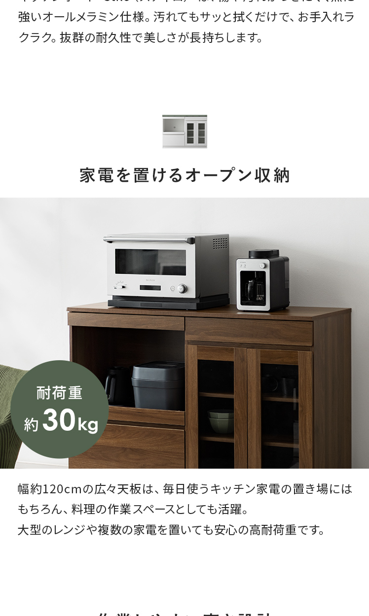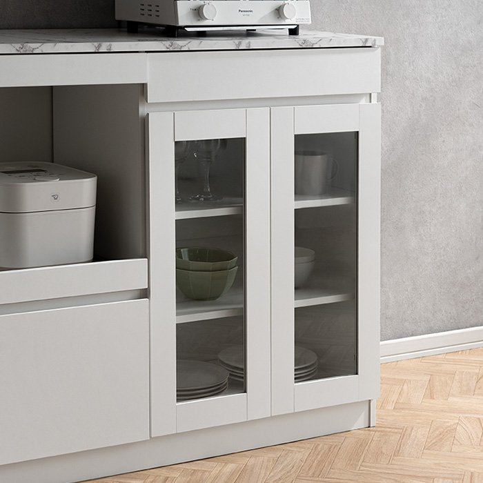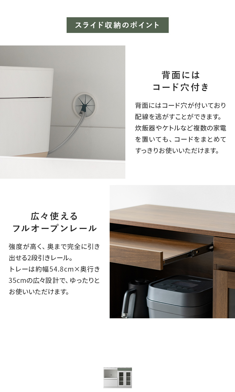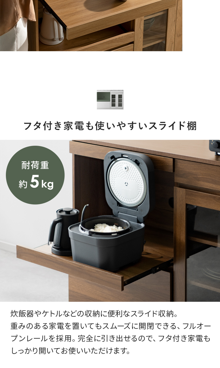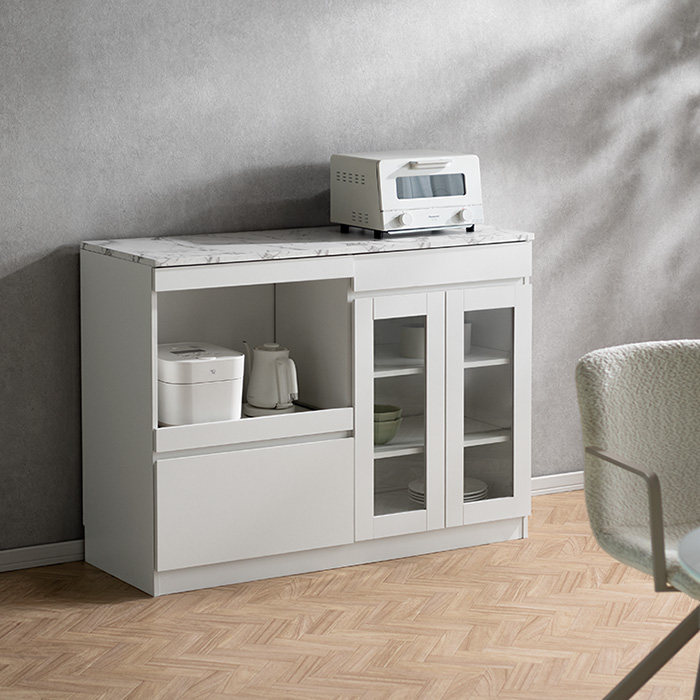 食器棚 ロータイプ キッチンカウンター キッチンラック キッチン収納 カップボード レンジ台 キッチンボード スライド棚 ガラス扉 オープン収納 コード穴付き コーヒースペース おしゃれ シンプル 北欧 フルオープンレール 可動棚 高さ調整 フラット扉 大理石調 木目調 巾木除け メラミン 大容量 高耐荷重 作業台付き ホワイト ブラウン ナチュラル【公式限定|いつでも3%OFFクーポン対象】