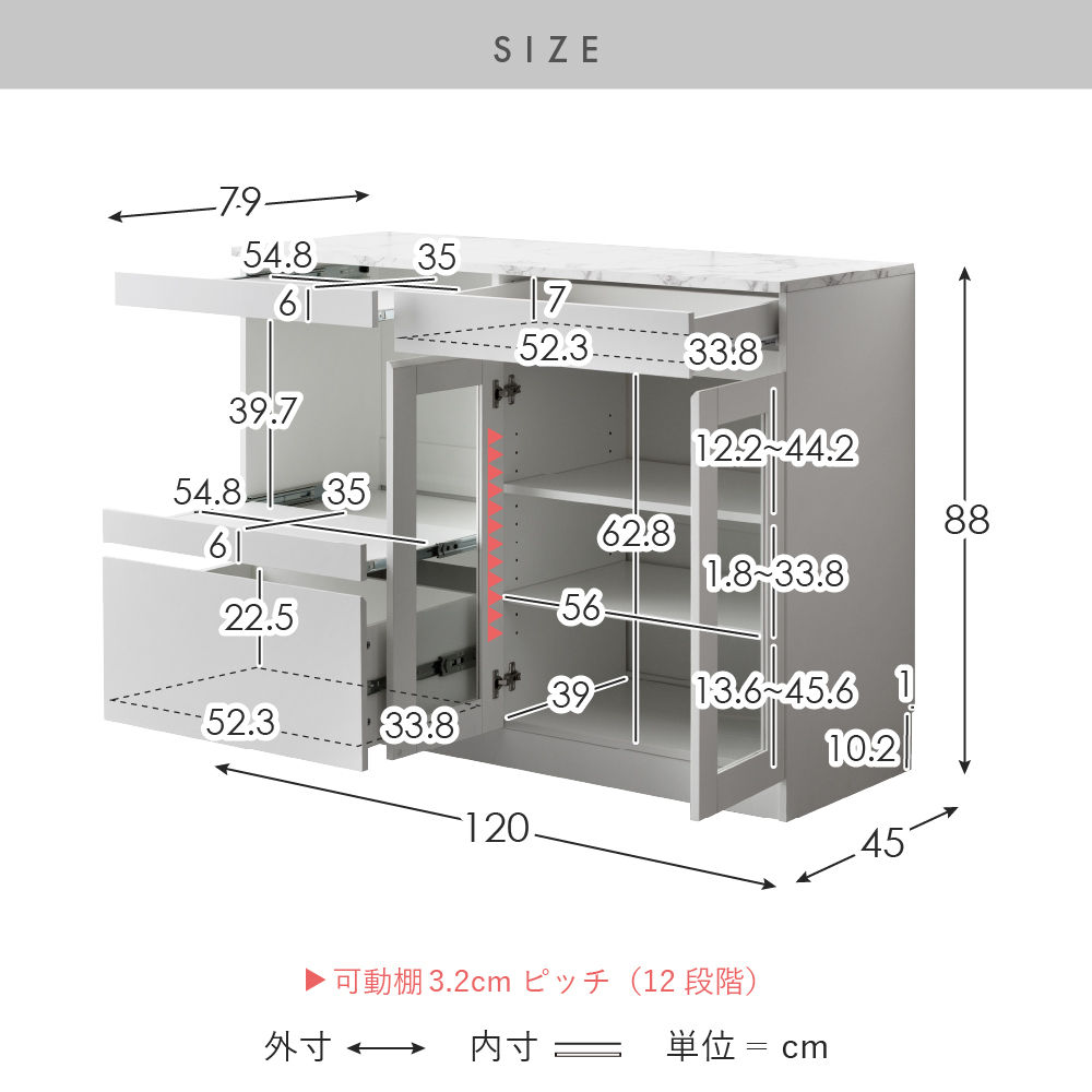 | 天板(オープン収納)サイズ | 約幅120×奥行き45cm |