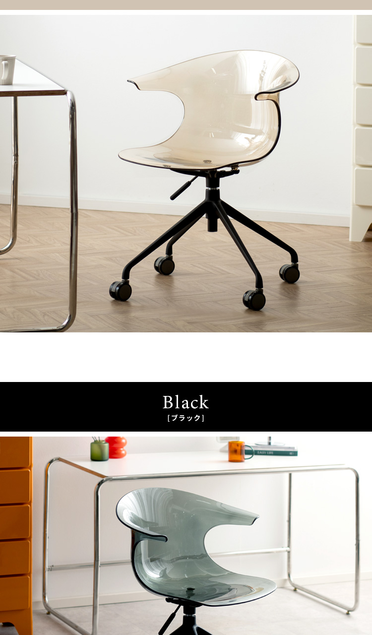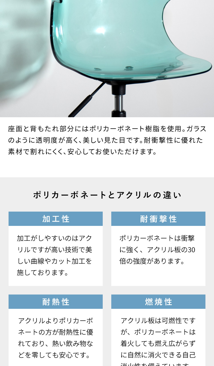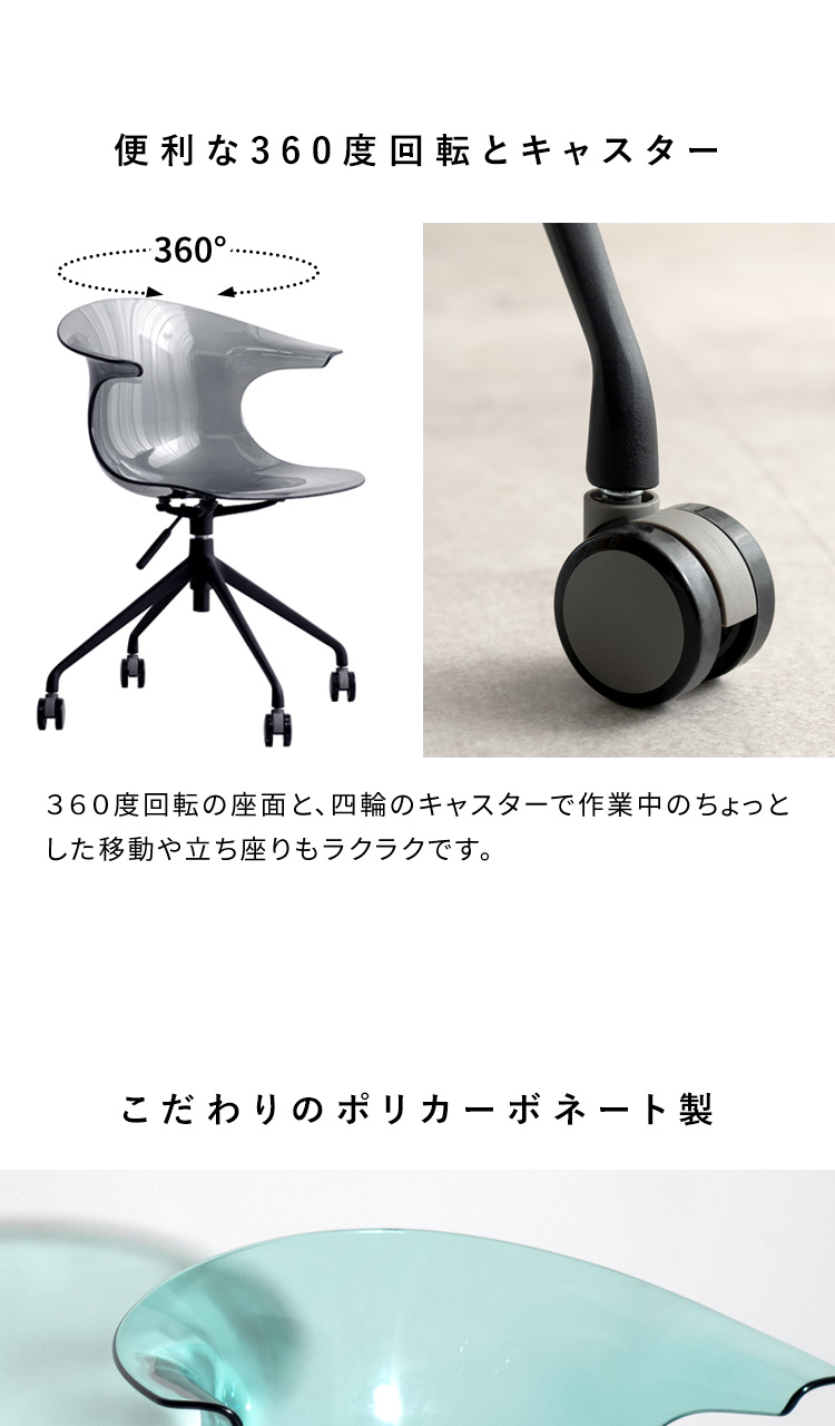 360度回転 ポリカーボネート製 キャスターチェア 回転 昇降