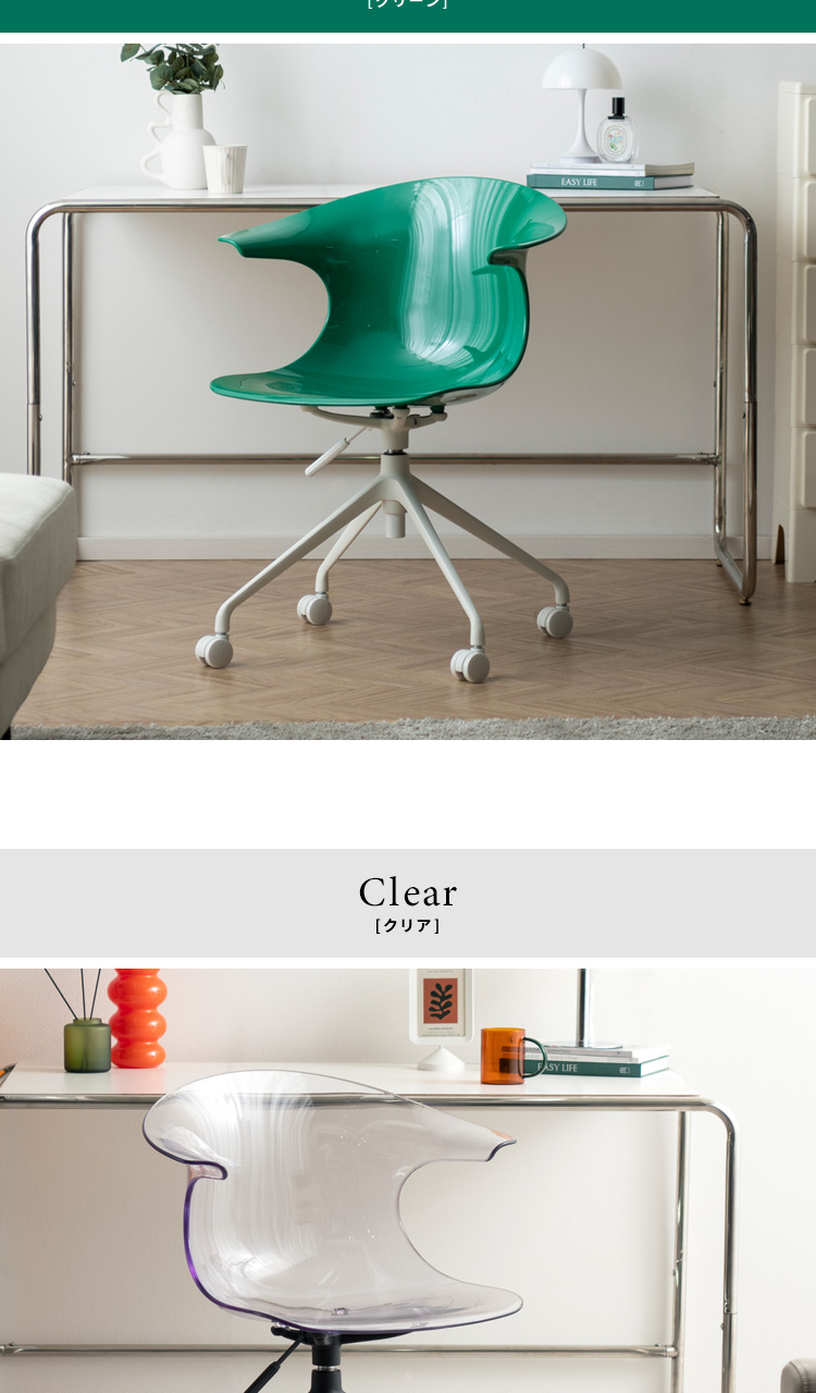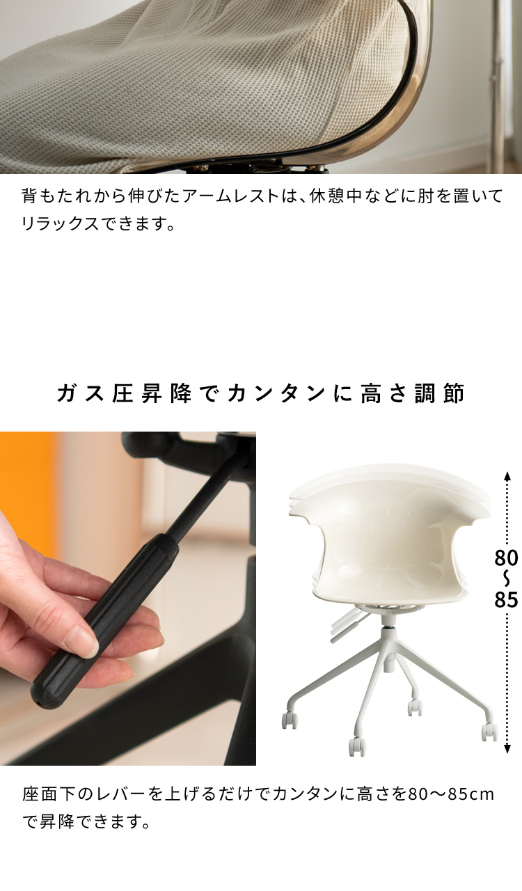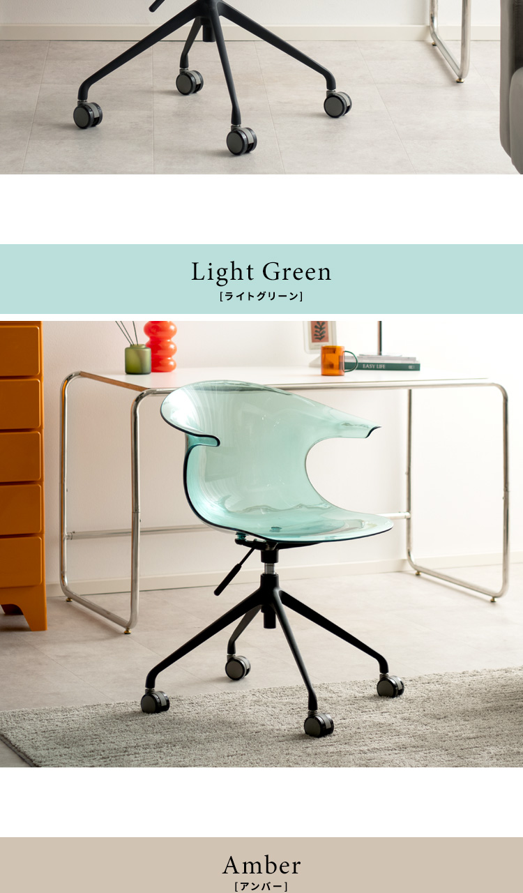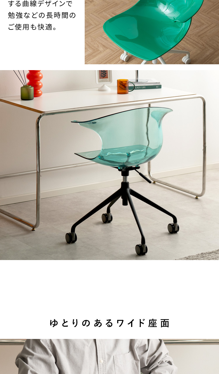 360度回転 ポリカーボネート製 キャスターチェア 回転 昇降