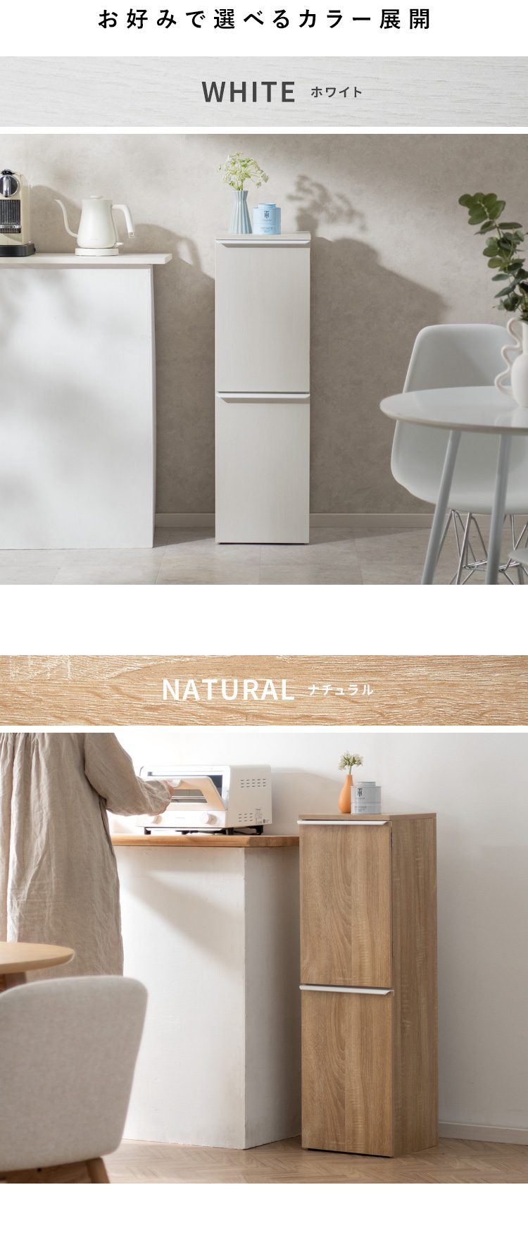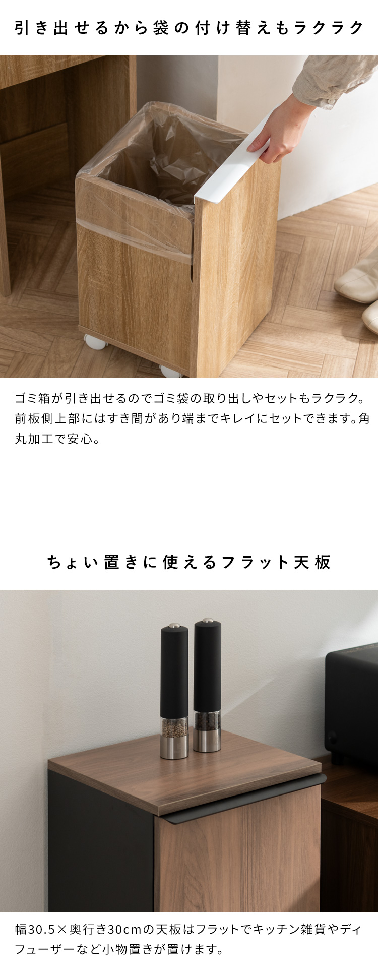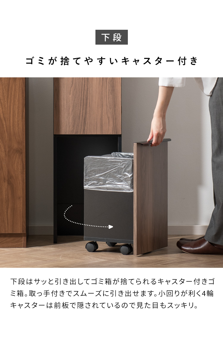 分別ダストボックス NotT〔ノット〕/ゴミ箱に見えないスタイリッシュなデザインでお部屋に溶け込む、木製分別ダストボックス『NotT(ノット)』。ゴミ箱はペットボトルや缶が分別できる上段と、移動して生ゴミがサッと捨てられるキャスター付きの下段に分かれており、キッチンなどでのゴミの分別がラクに行えます。ホワイト、ナチュラル、ブラウンの3カラーをご用意。お好みやお部屋の雰囲気でお選びいただけます。