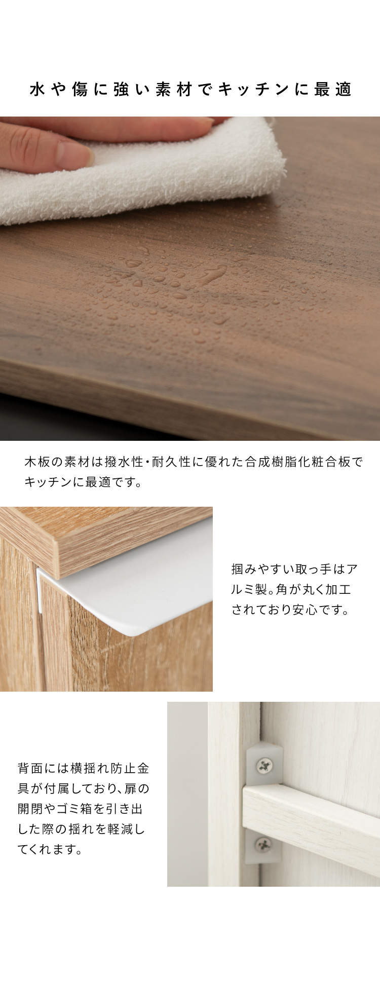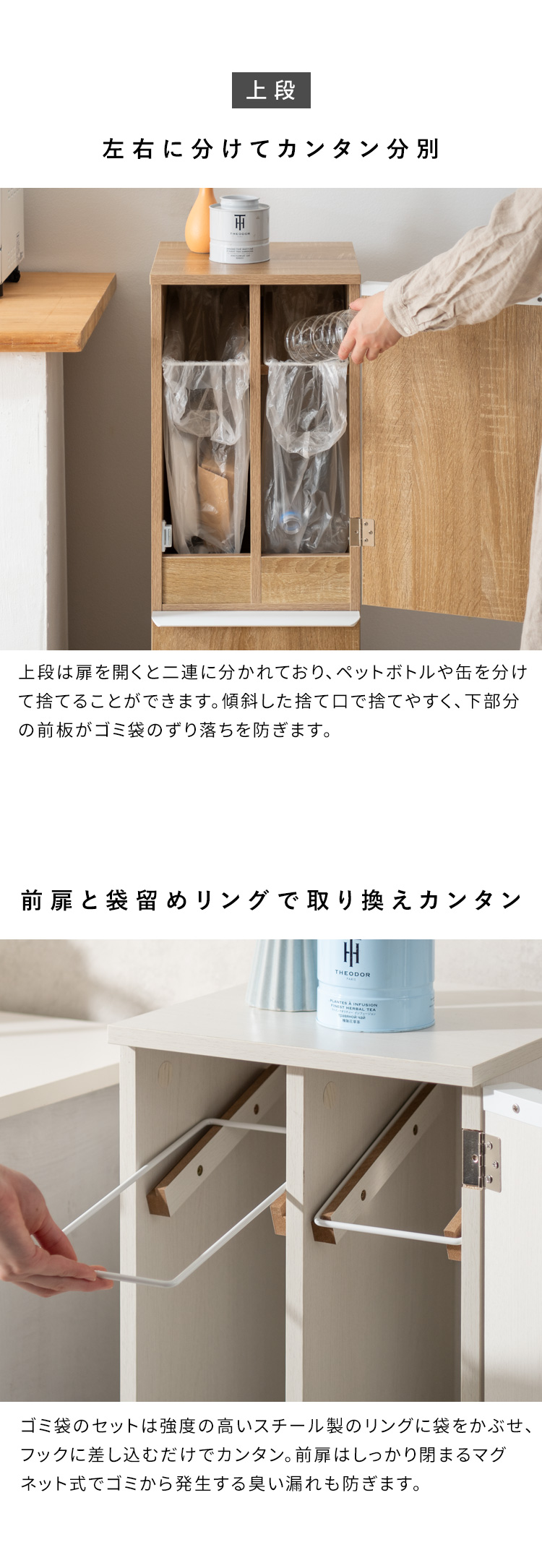 | 備考 | 組立式(約60分)、対応ポリ袋:上段各20L、下段30L、天板耐荷重:約5kg |
