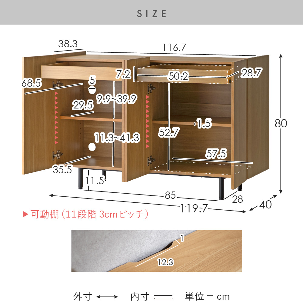 サイズ | 約幅119.7×奥行き40×高さ80cm |