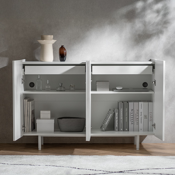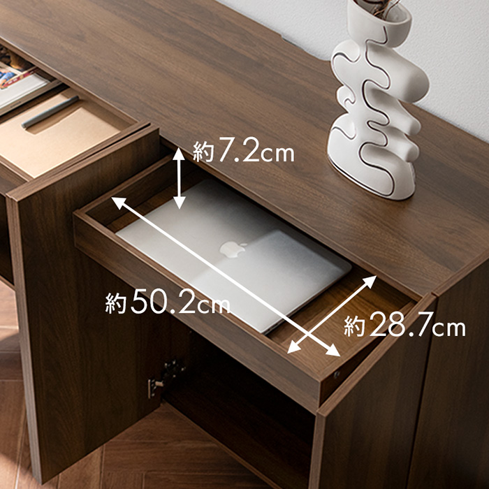 インナー引出し付き 収納棚 扉収納 可動棚 リビング サイドボード ソフトクローズ コード穴 スリム チェスト 木製 木目調 日本製 国産 大容量 白 ホワイト ブラウン ナチュラル
