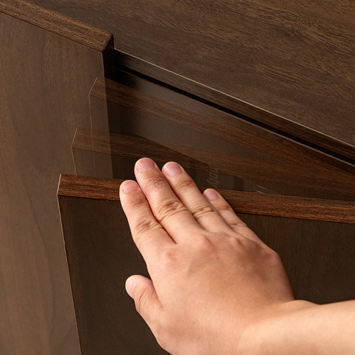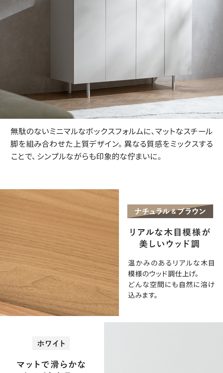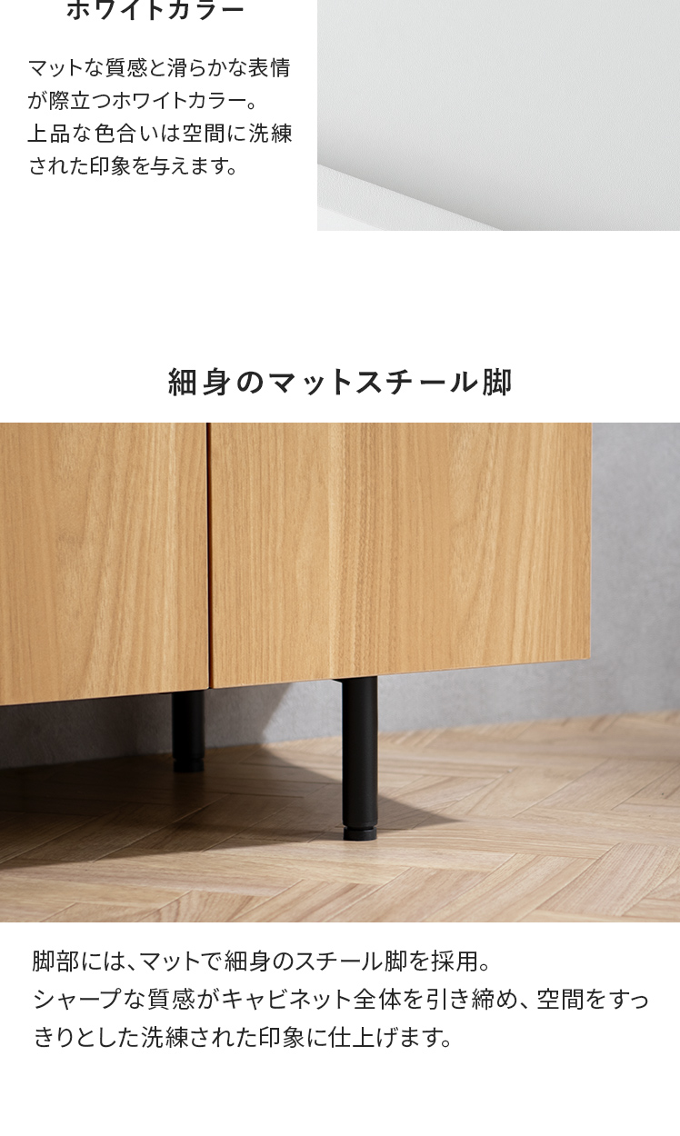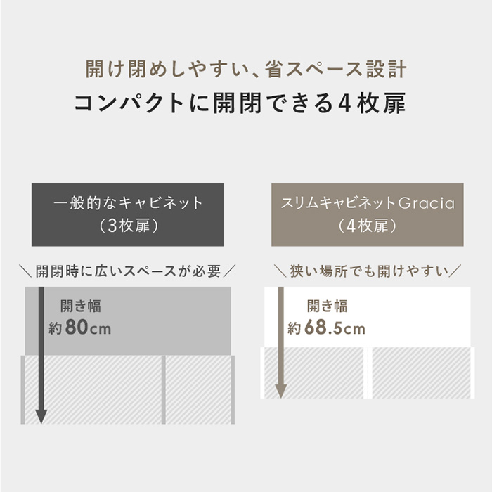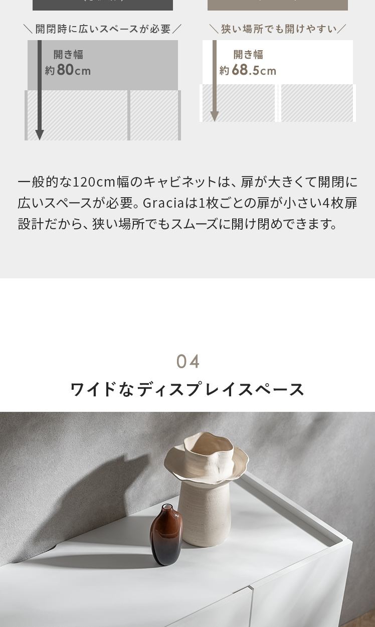 スリムキャビネット Gracia〔グラシア〕/奥行き約40cmのスリムボディに、たっぷりしまえる収納力を備えたキャビネット“Gracia(グラシア)”。洗練のミニマルデザインで生活感を隠して、すっきり整った空間を叶えます。洗練のミニマルデザインで生活感を隠して、すっきり整った空間を