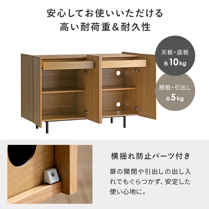 耐荷重 | 天板・底板/約10kg、可動棚(1枚あたり)/約5kg、引出し/約5kg |