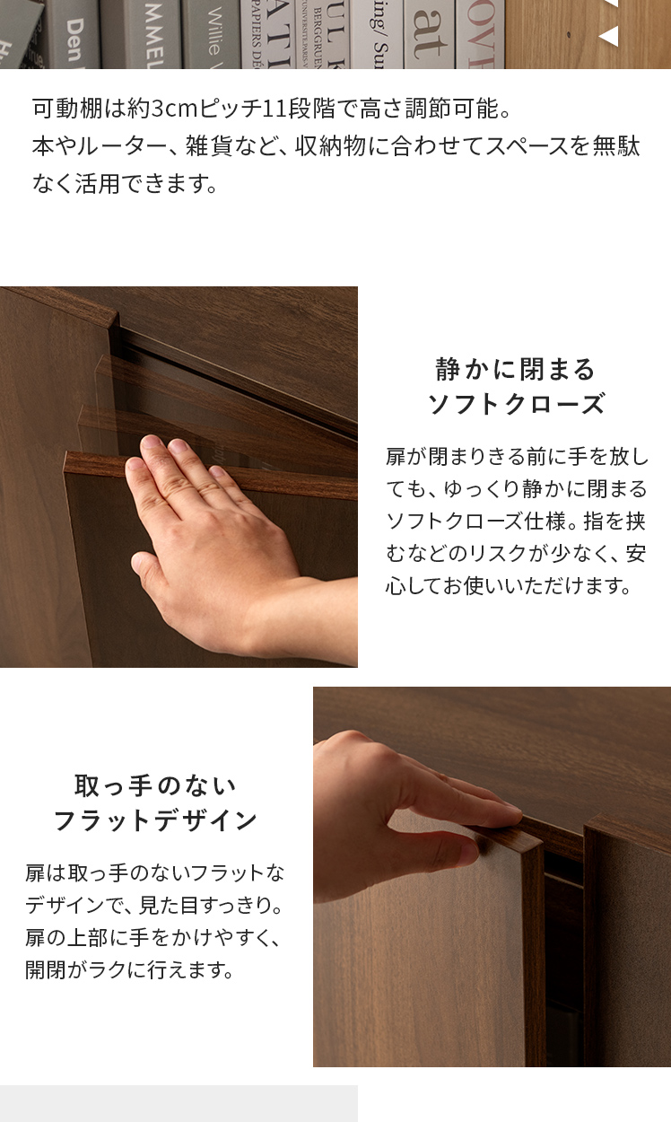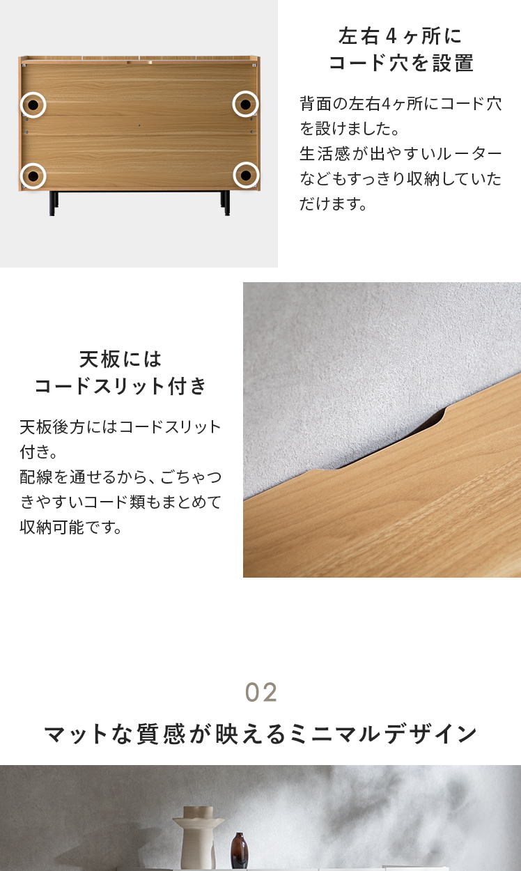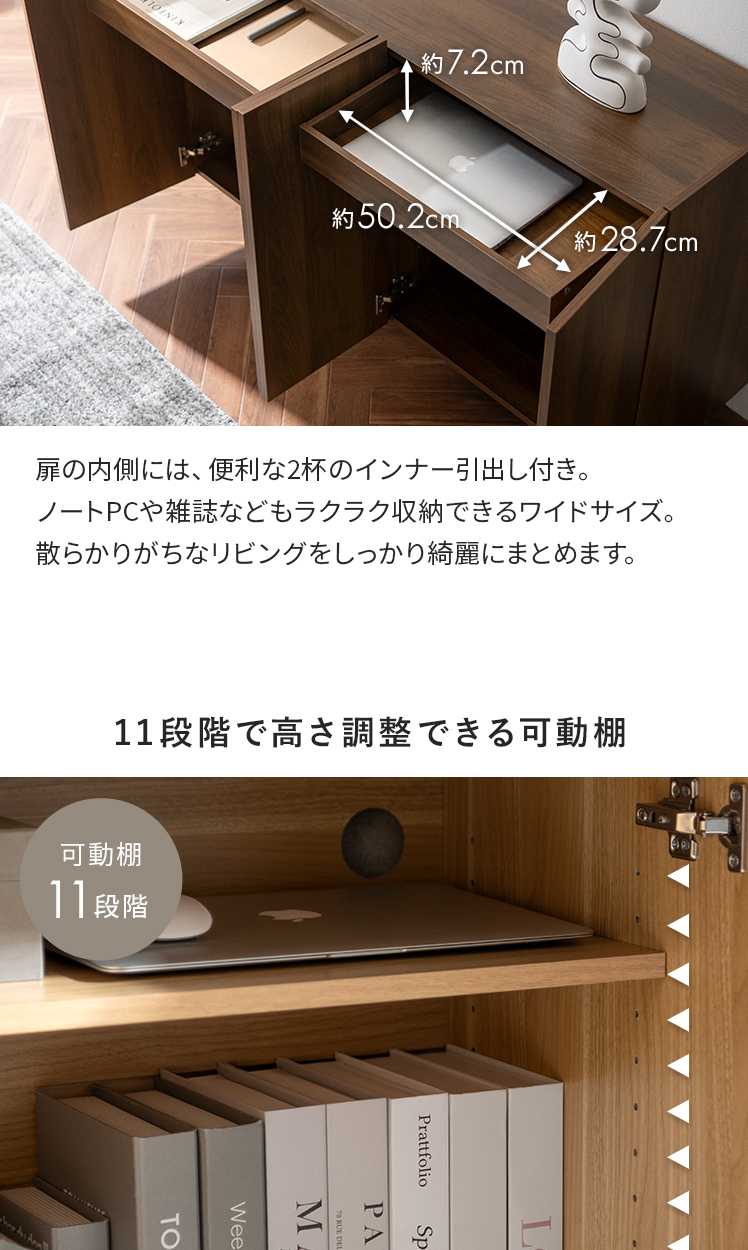 インナー引出し付き 収納棚 扉収納 可動棚 リビング サイドボード ソフトクローズ コード穴 スリム チェスト 木製 木目調 大容量 白 ホワイト ブラウン ナチュラル【5%OFFクーポン対象|公式なら毎日お得】