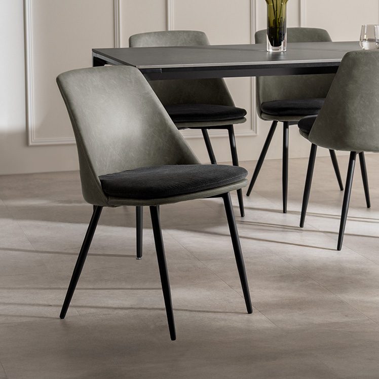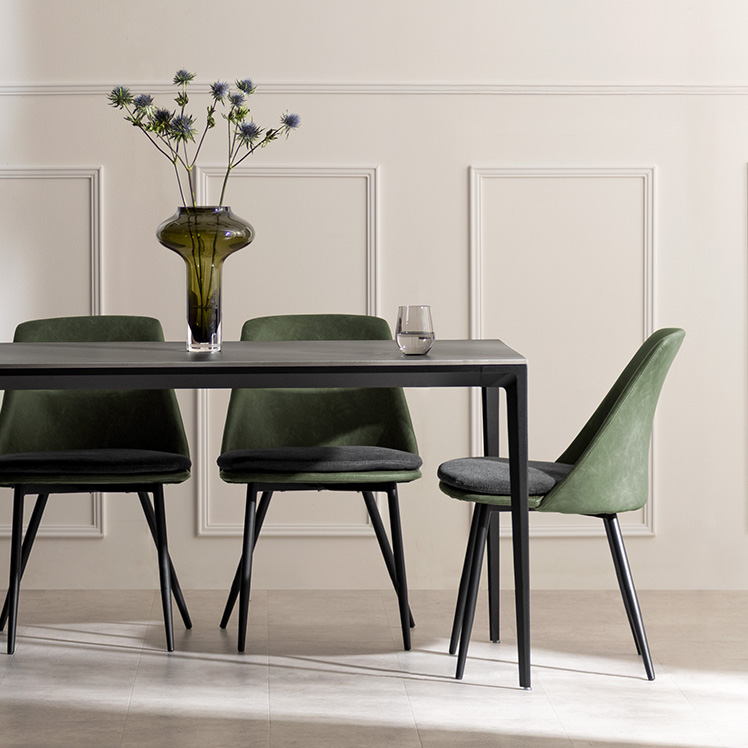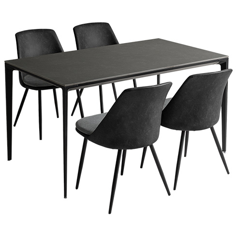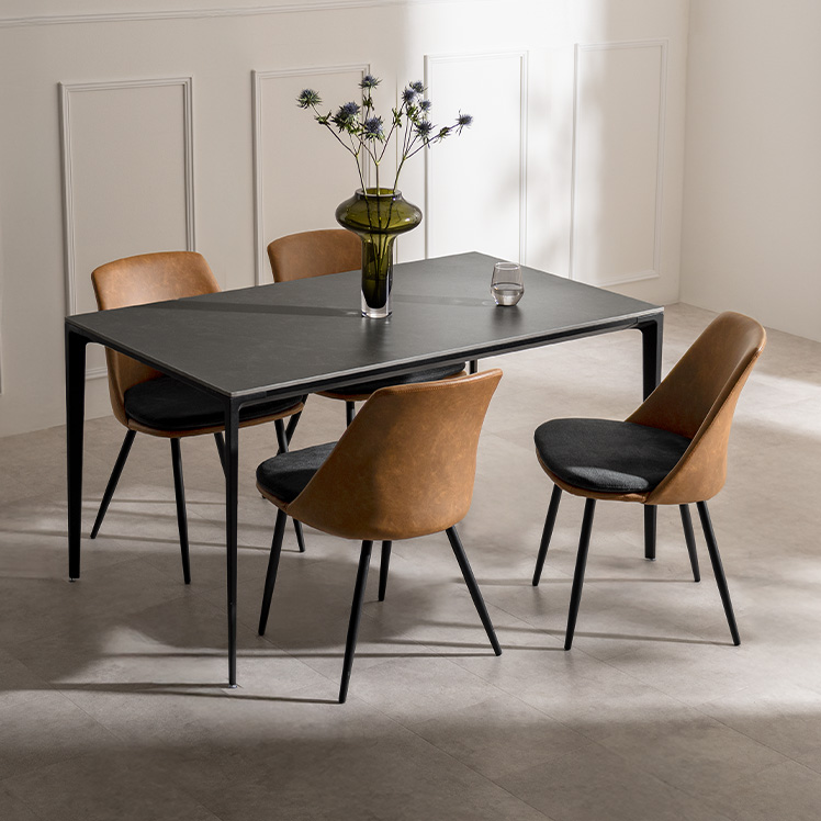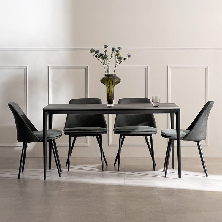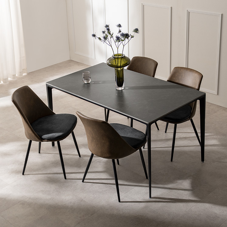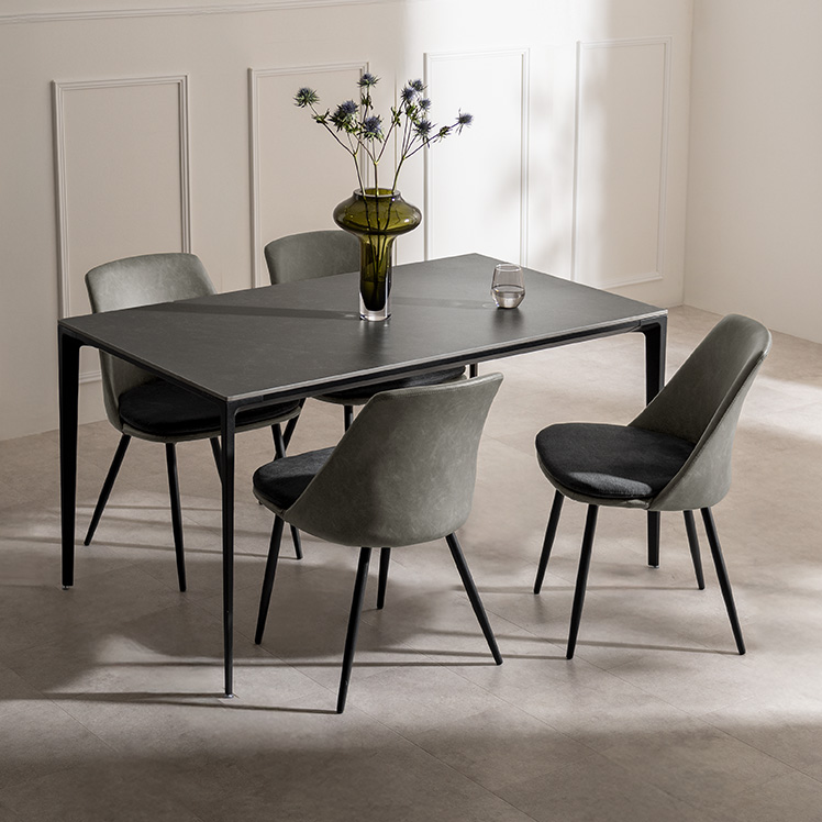 ダイニングテーブル Veritas〔ヴェリタス〕5点セット/上質で都会的な空間を演出するモダンな佇まい。質の良いセラミック天板は傷や汚れ、熱にも強く、美しさを長く保てます。広々としたサイズ感が、ホテルライクなダイニングをより快適で洗練された空間へと導きます。