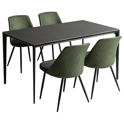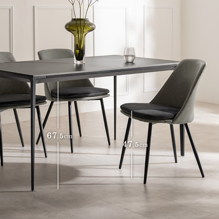 材質 | テーブル/セラミック、スチール(粉体塗装仕上げ) チェア/張地/ポリウレタン・ポリエステル、中材/ウレタンフォーム、脚部/スチール(粉体塗装) |