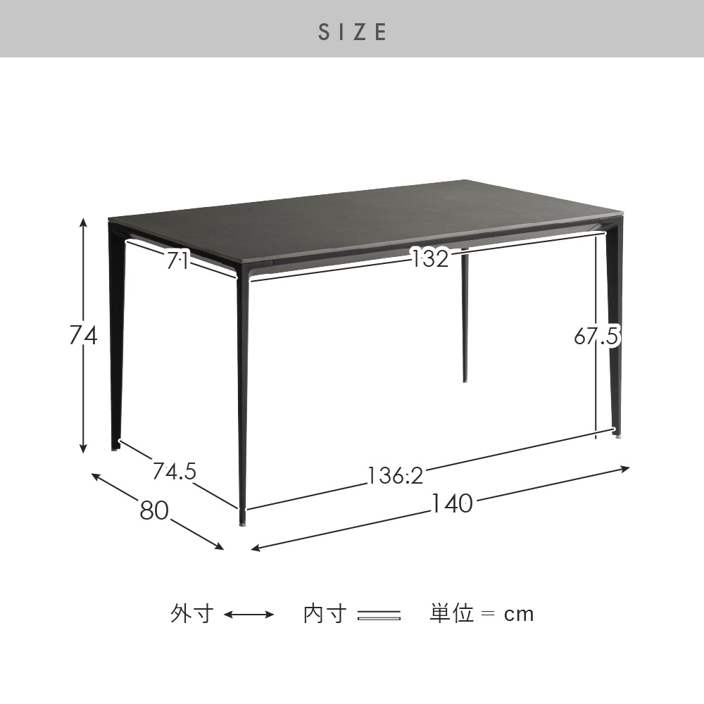 サイズ | 約幅140×奥行き80×高さ74cm |