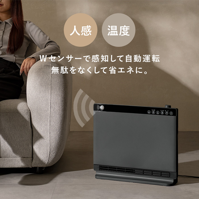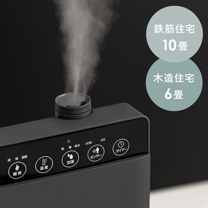3L リモコン付き 速暖 人感 温感 Wセンサー 超音波 高温除菌 温室感知 大風量 1110W メモリー機能 タイマー機能 ミスト 7時間可動 スリム設計 省スペース 自動オフ サーモスタット機能 シンプル マット ナチュラル おしゃれ タッチパネル ブラック