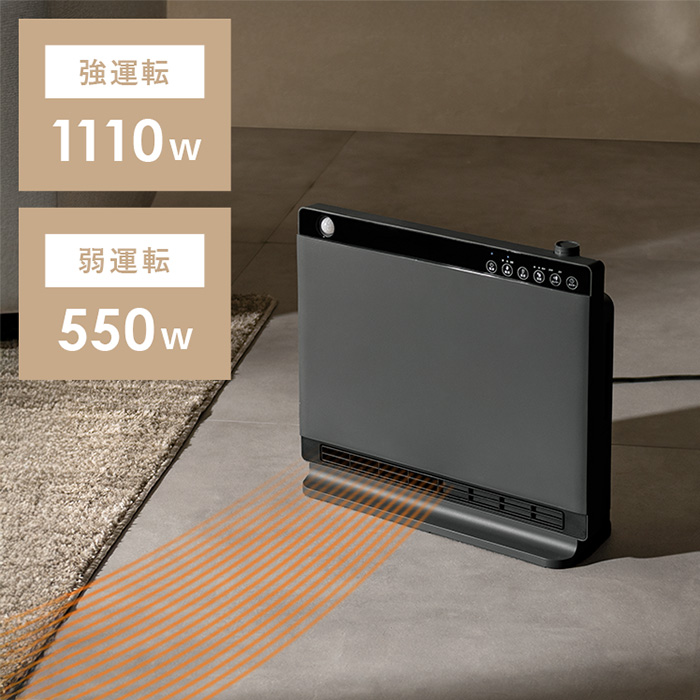 | 定格消費電力 | 暖房:強/1100w、弱/550w 加湿:強/90w、弱/15w |