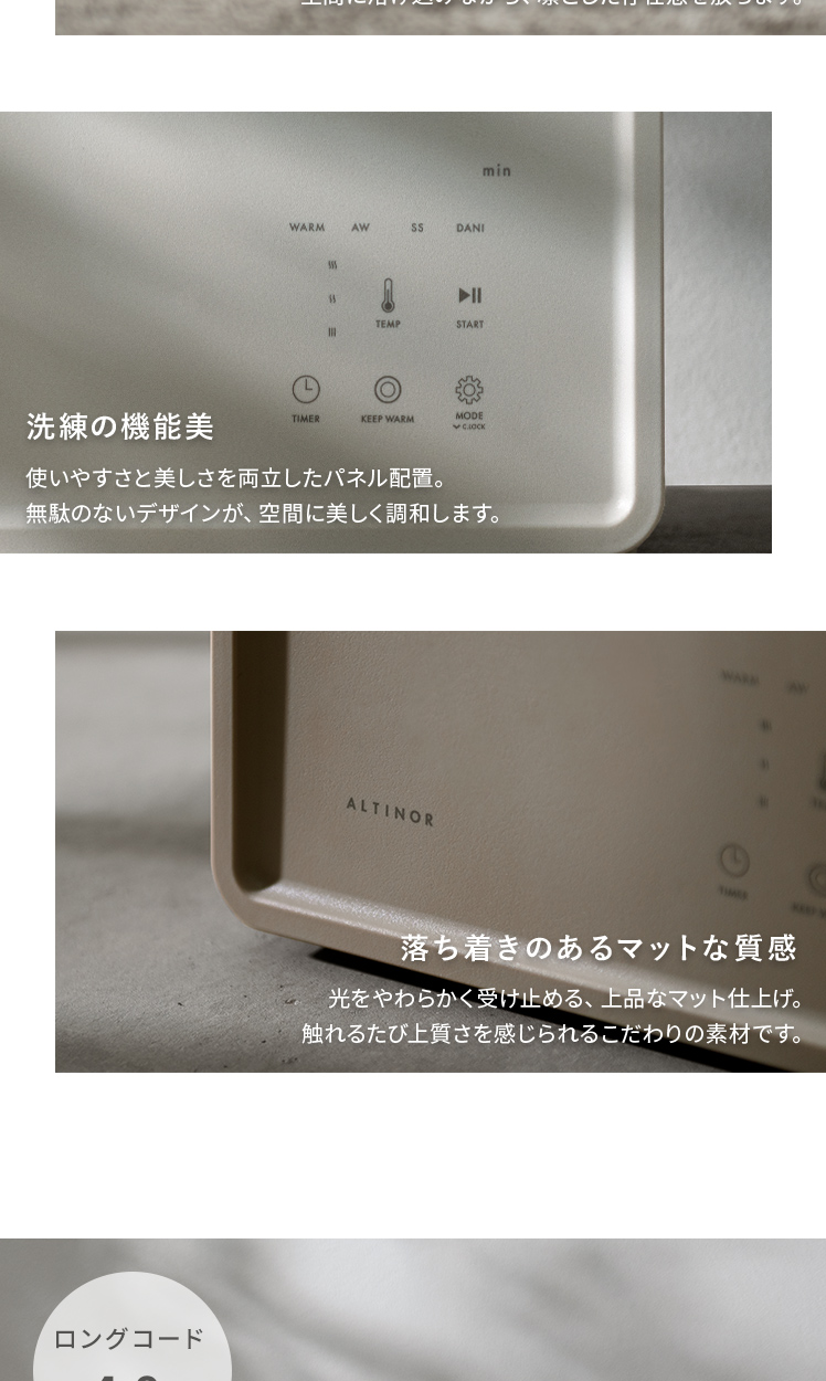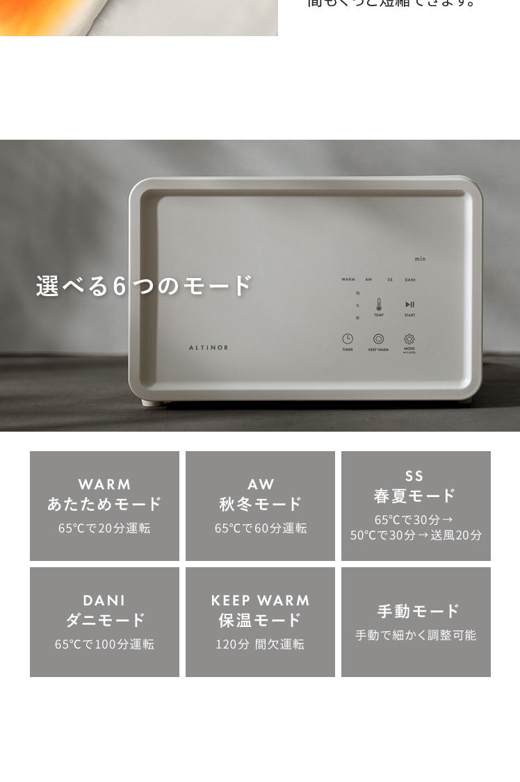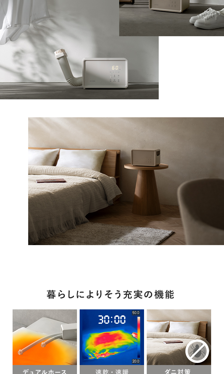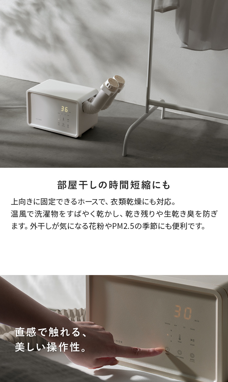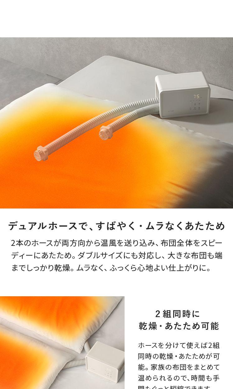 ALTINOR〔アルティノル〕 布団乾燥機/上質なデザインと高い機能を兼ね備えた、インテリア発想の布団乾燥機。速乾・速暖性に優れたデュアルホースで、布団はもちろん、靴・衣類の乾燥まで大活躍。機能も美しさも妥協せず仕上げた一台で、季節を問わず快適な暮らしを。