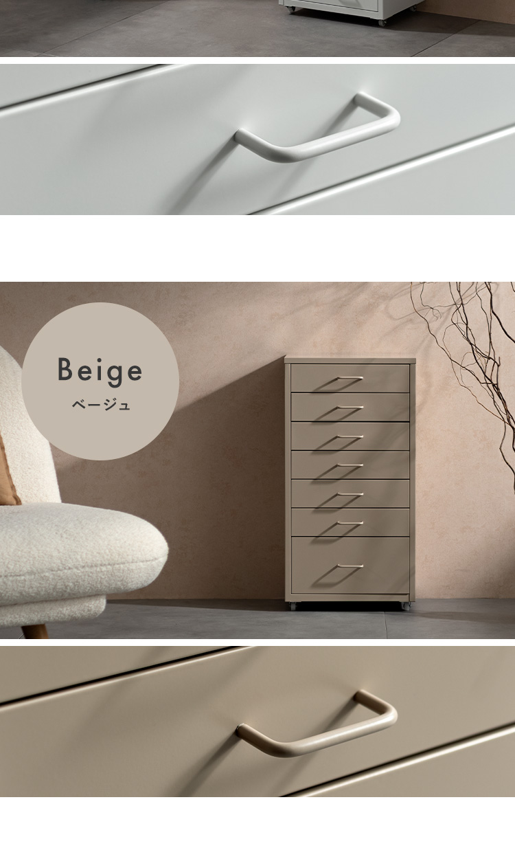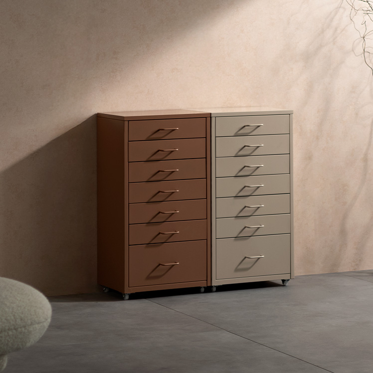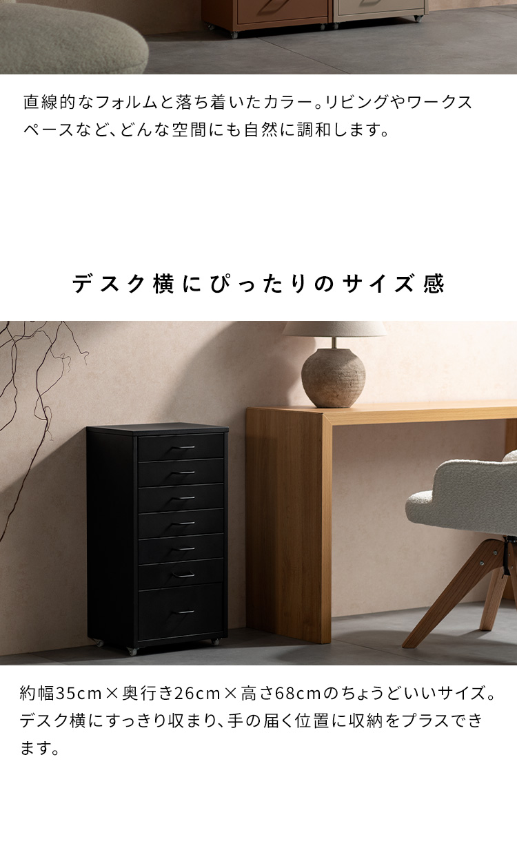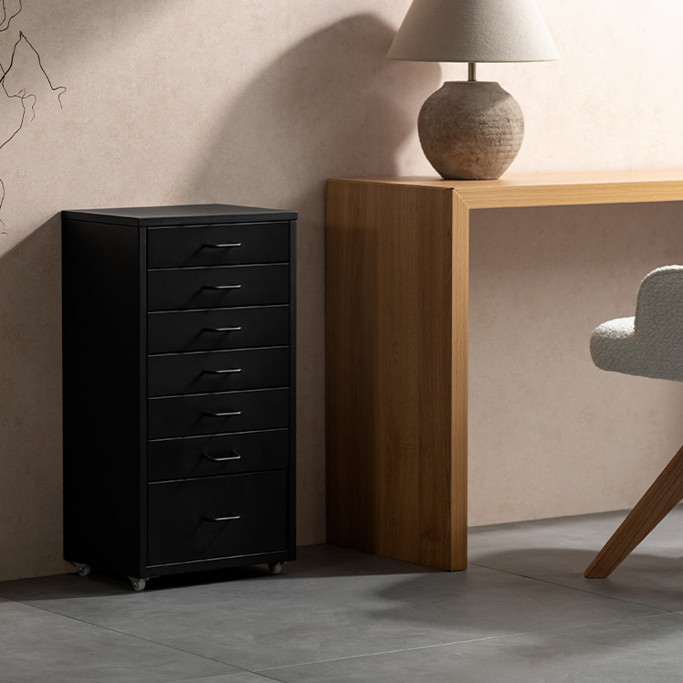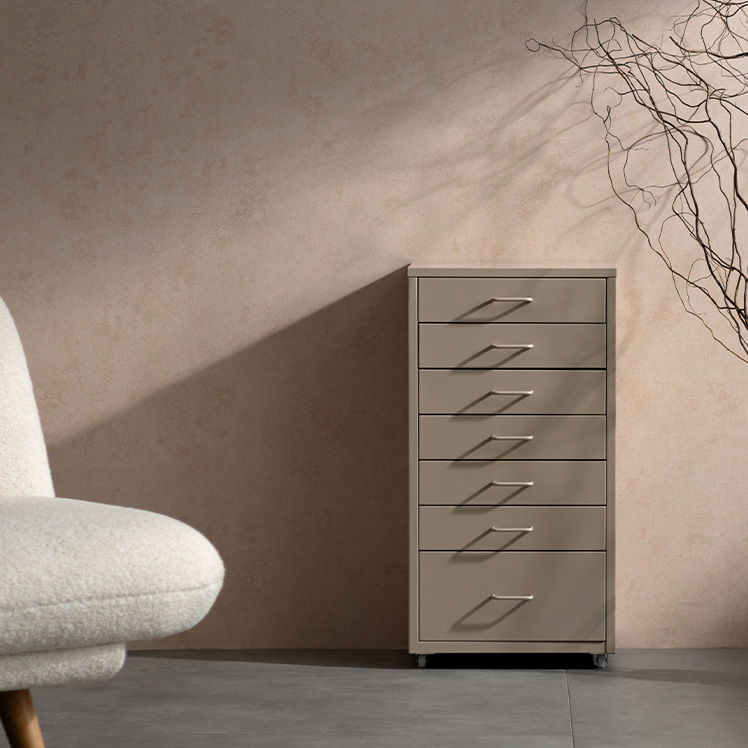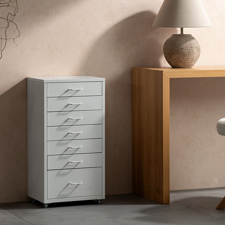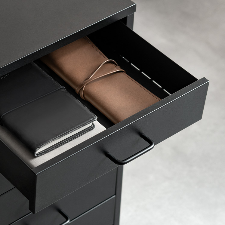 ドロワーキャビネット Muun〔ムーン〕ハイタイプ/ミニマルで洗練されたデザインに、7杯の引き出しを備えた大容量の収納力。デスク横にすっきり収まるサイズ感で、日常の使いやすさとスタイリッシュな佇まいを両立しました。
