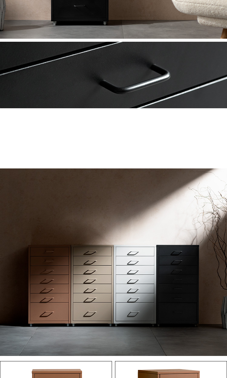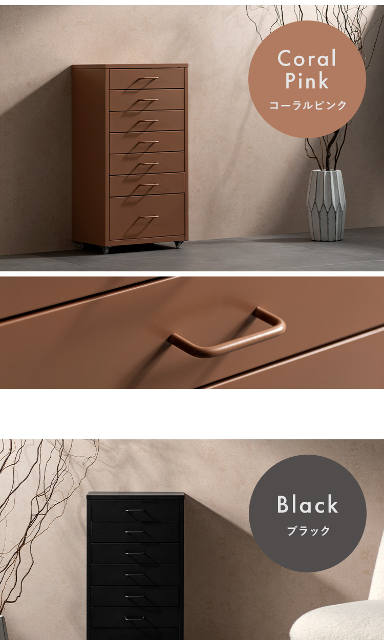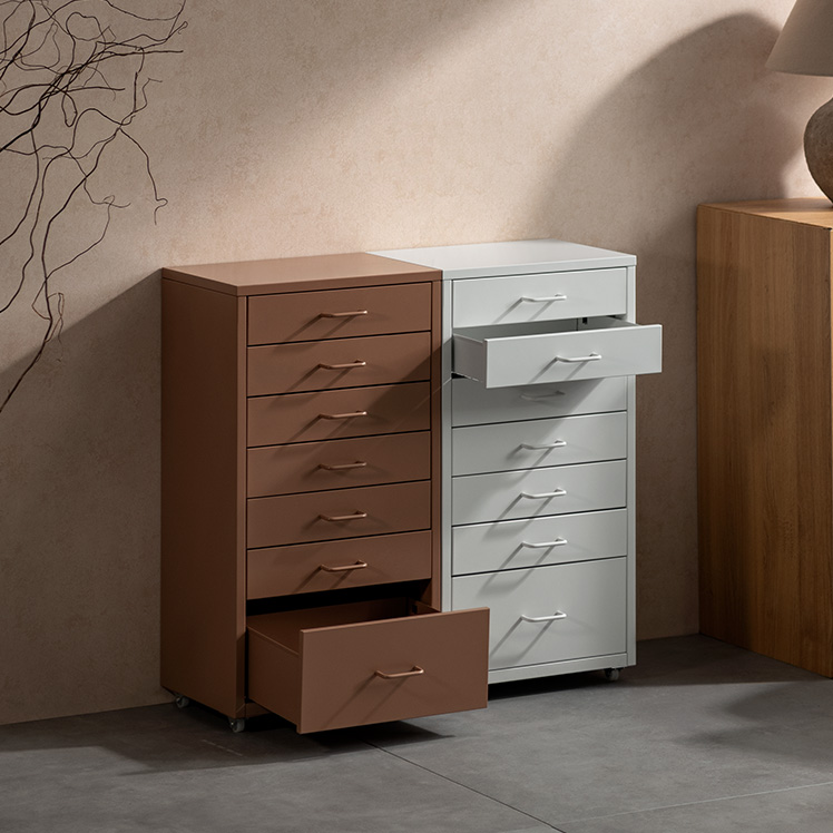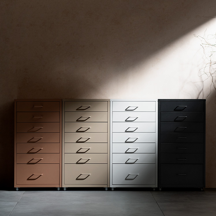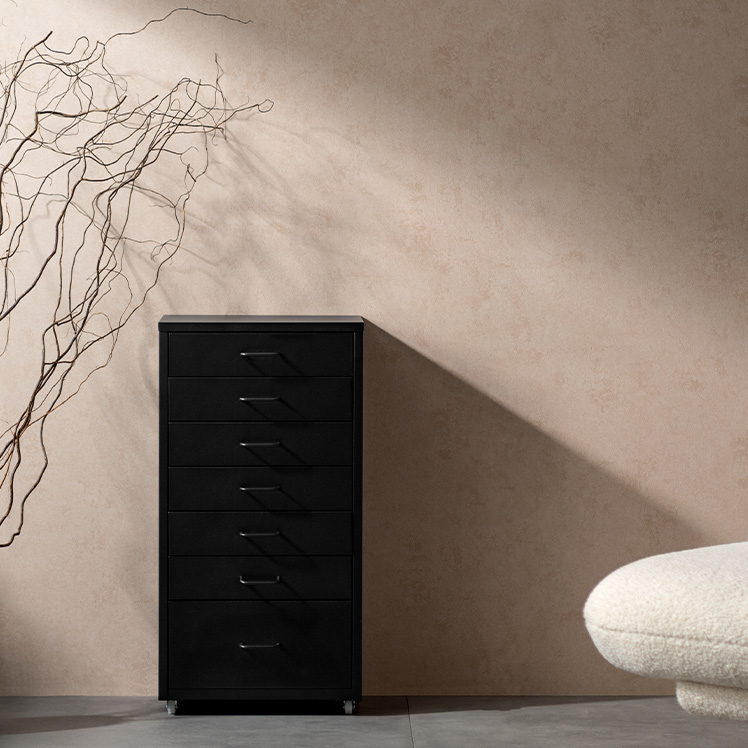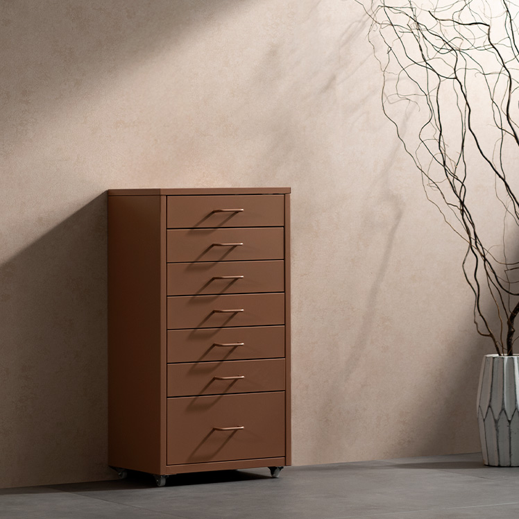 ドロワーキャビネット Muun〔ムーン〕ハイタイプ/ミニマルで洗練されたデザインに、7杯の引き出しを備えた大容量の収納力。デスク横にすっきり収まるサイズ感で、日常の使いやすさとスタイリッシュな佇まいを両立しました。