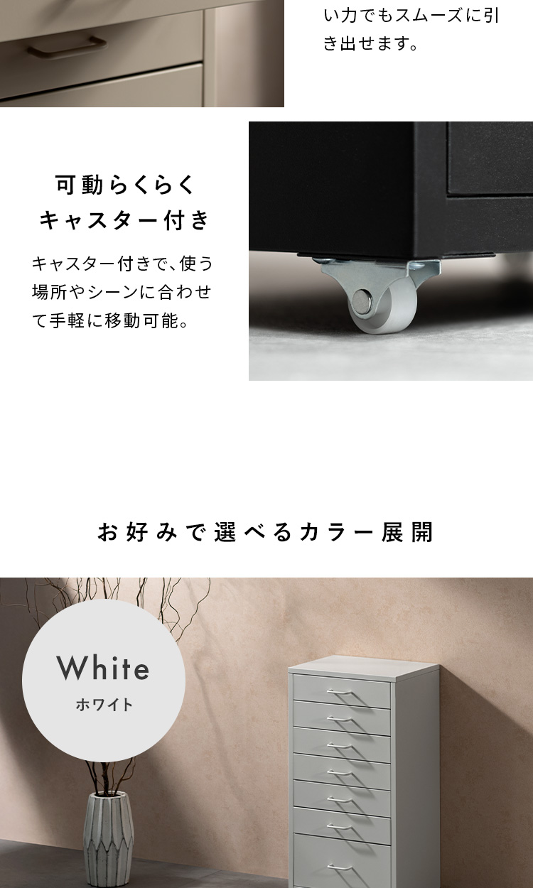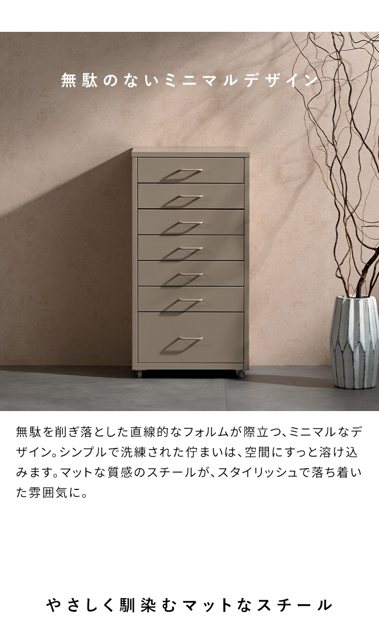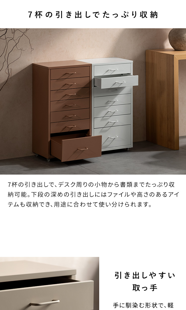 スチール 引き出し 7杯 キャスター付き コンパクト 収納 スチール製 スリム 事務所 会社 店舗 オフィス