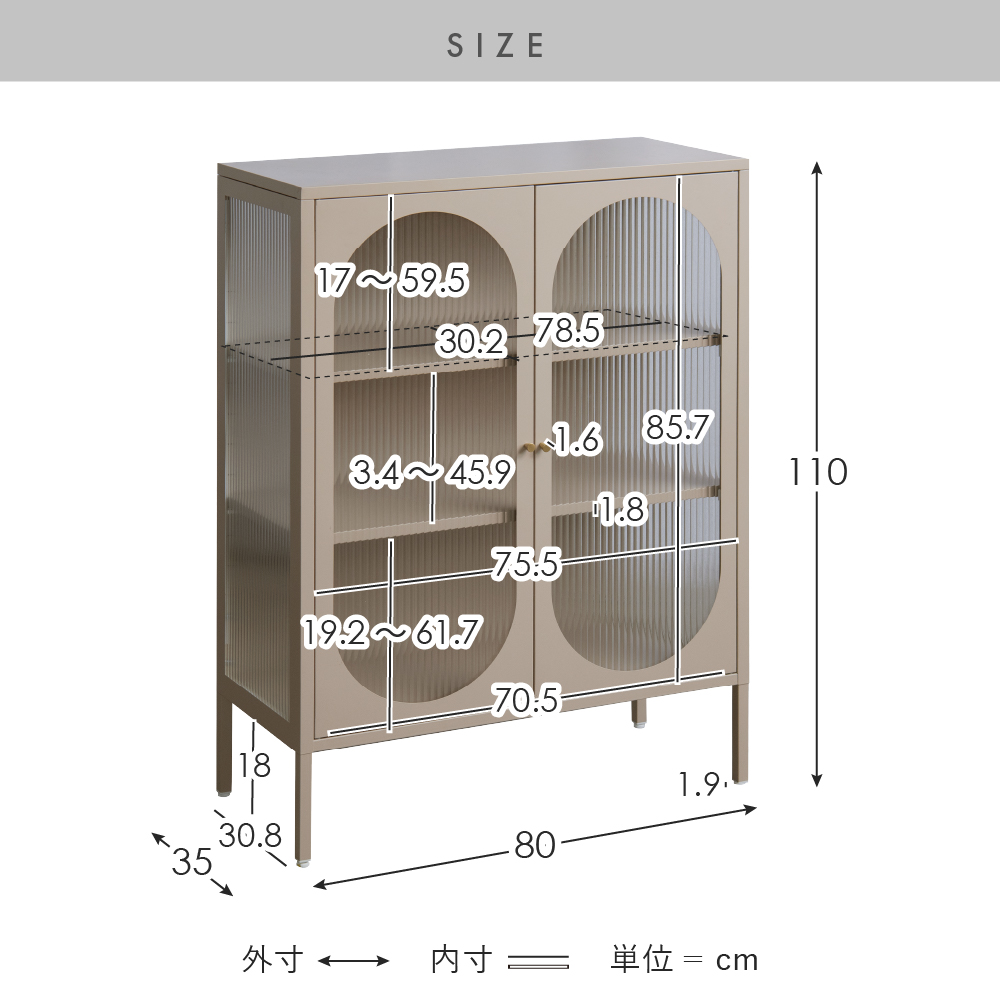 | サイズ | 約幅80×奥行き35×高さ110cm |