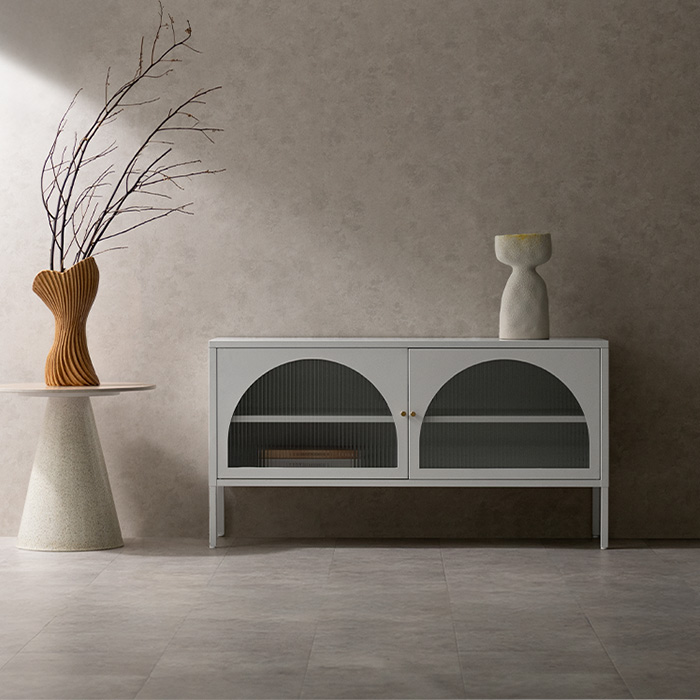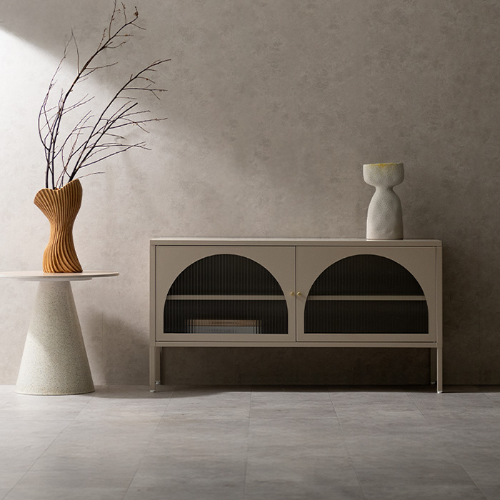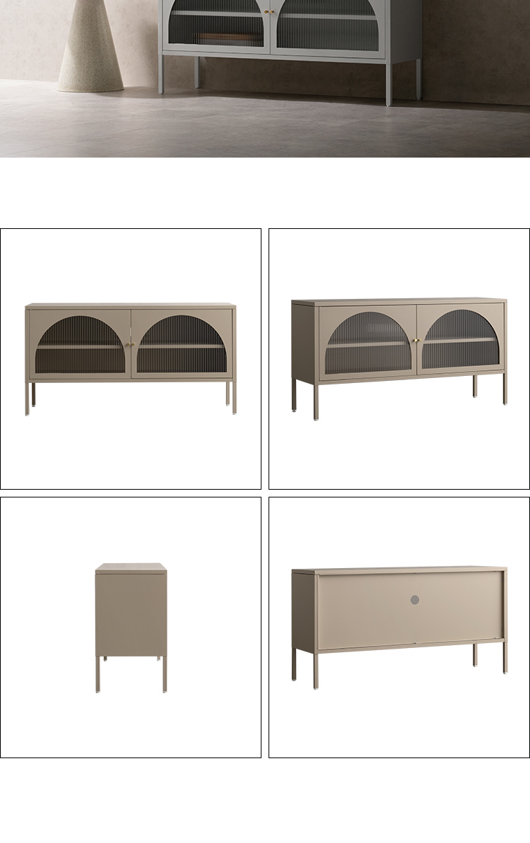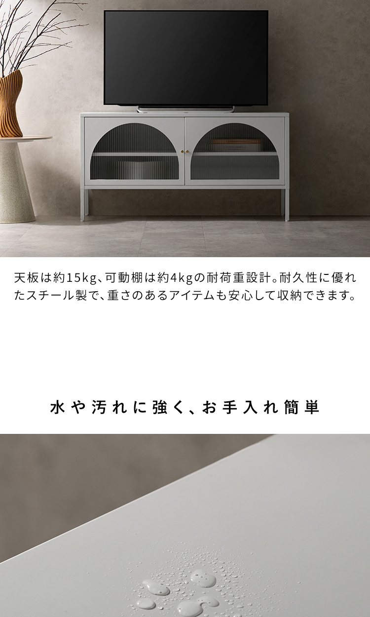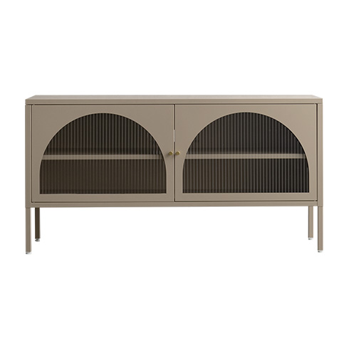 ローボード キャビネット テレビ台 ナチュラル クラシカル モダン アーチ ガラス扉 ガラス棚 スチール 収納 オフィス 事務所 店舗 おしゃれ くすみカラー ベージュ ホワイト