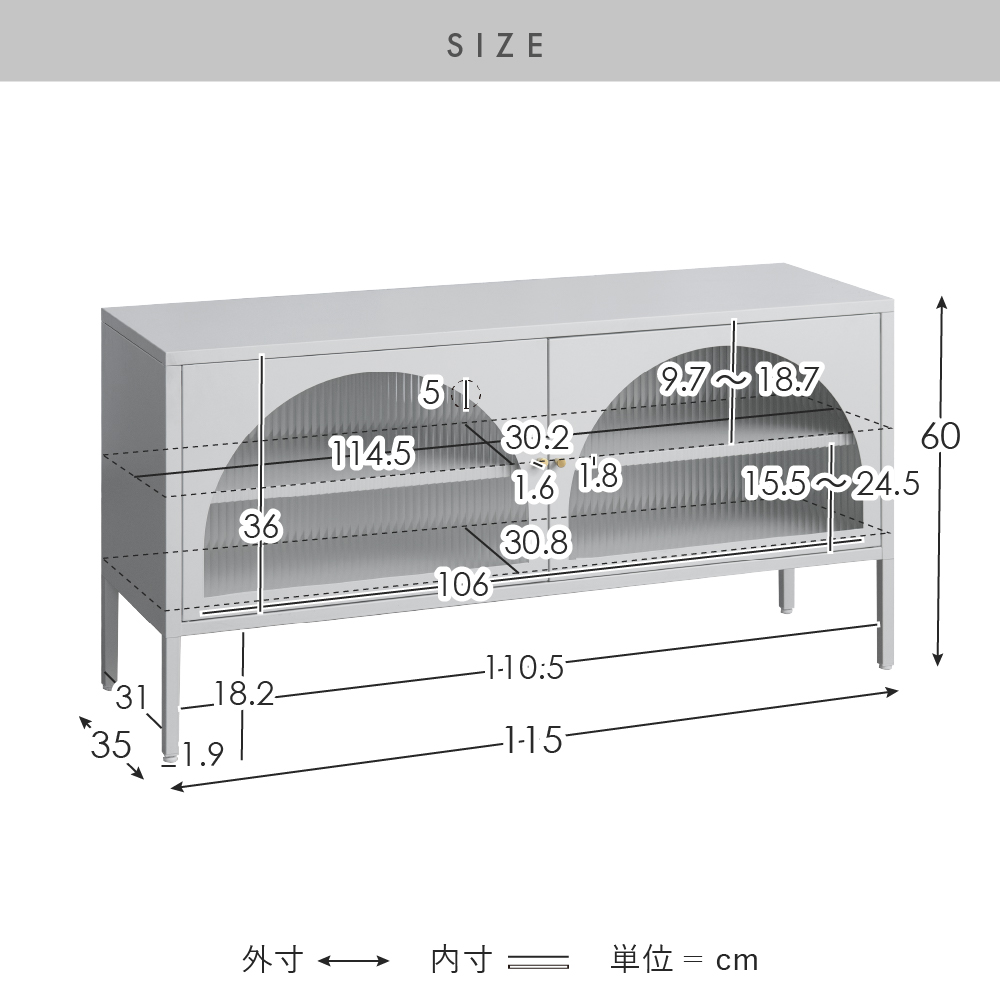 | サイズ | 約幅115×奥行き35×高さ60cm |