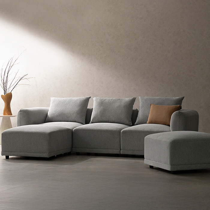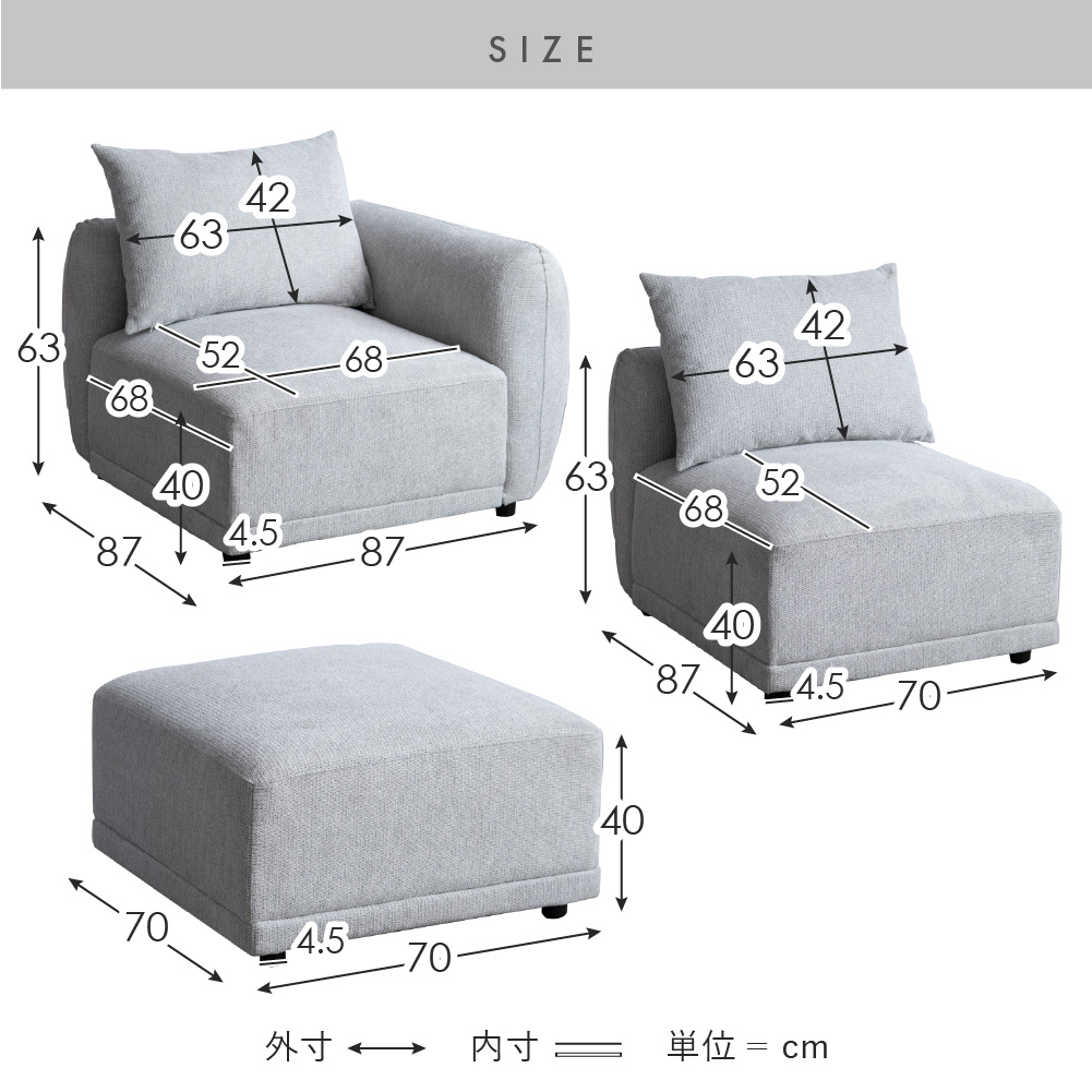 3Pユニットソファ Palu〔パル〕 コーナーソファ単品/三種類のソファを組み合わせてお好みの形にできるユニットソファ『Palu(パル)』。肘掛けのあるコーナーソファ、中央に置けるアームレスソファ、オットマンから置く場所や座る人数に合わせて様々なパターンができます。座り心地の良い座面と落ち着くのあるグレーカラーの張地でリラックスタイムを快適にお過ごしいただけます。