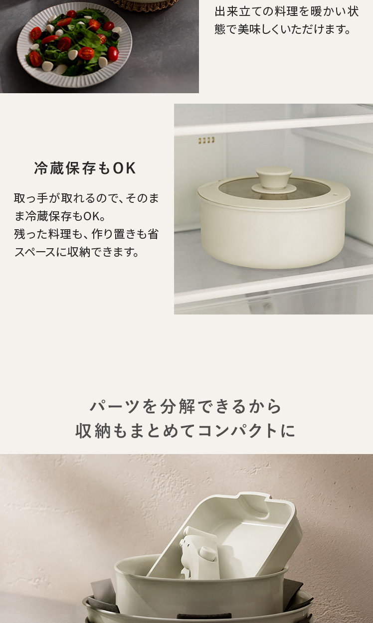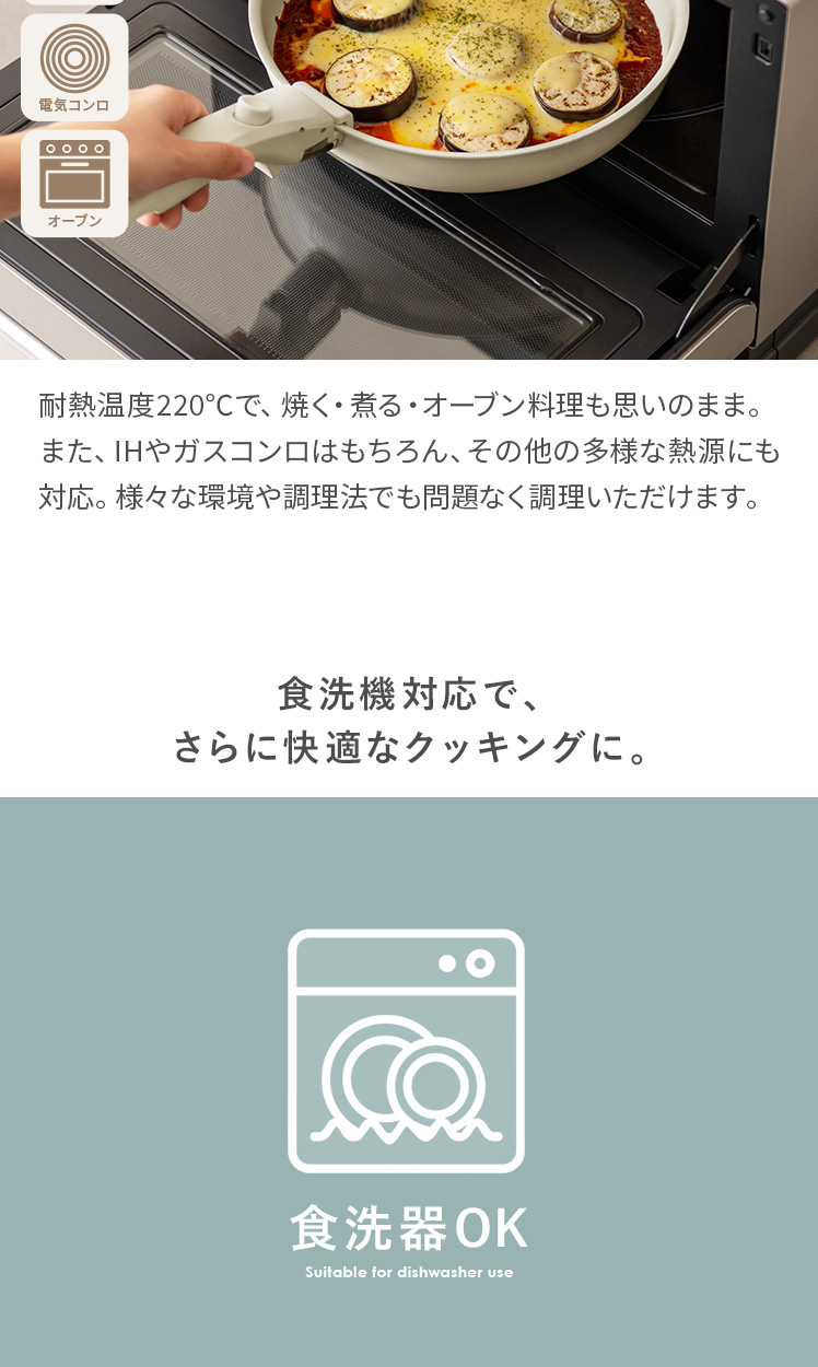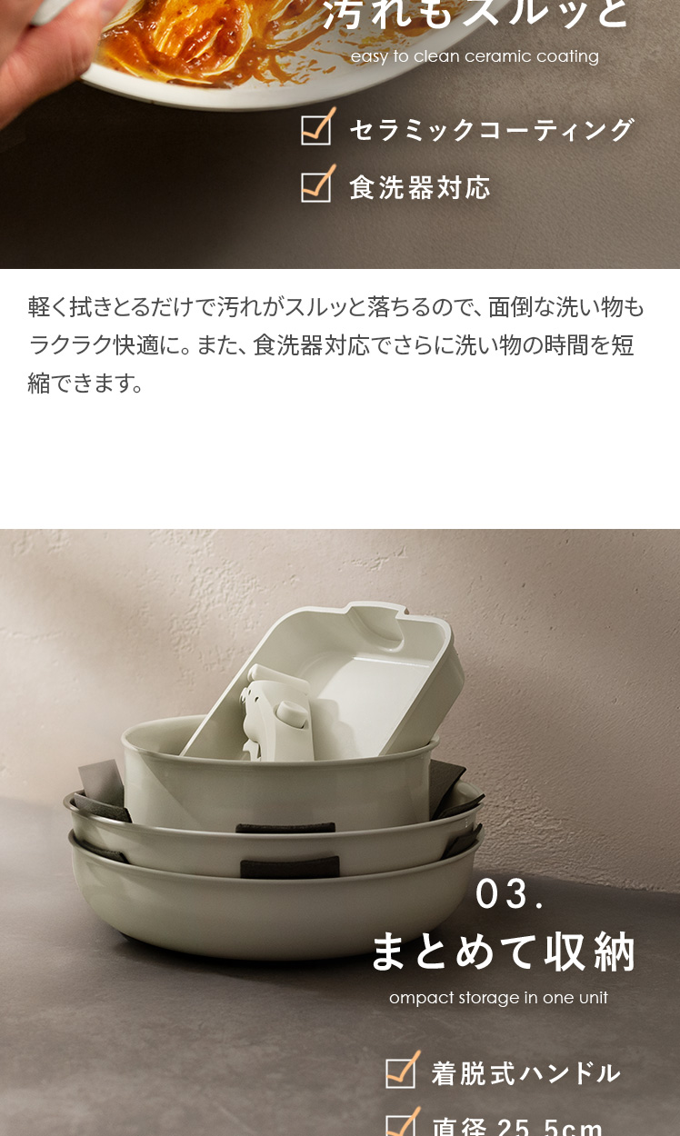 IH対応 ガス火対応 PFOAフリー ナノ無機セラミックコーティング 食洗器OK 脱着式ハンドル 軽量