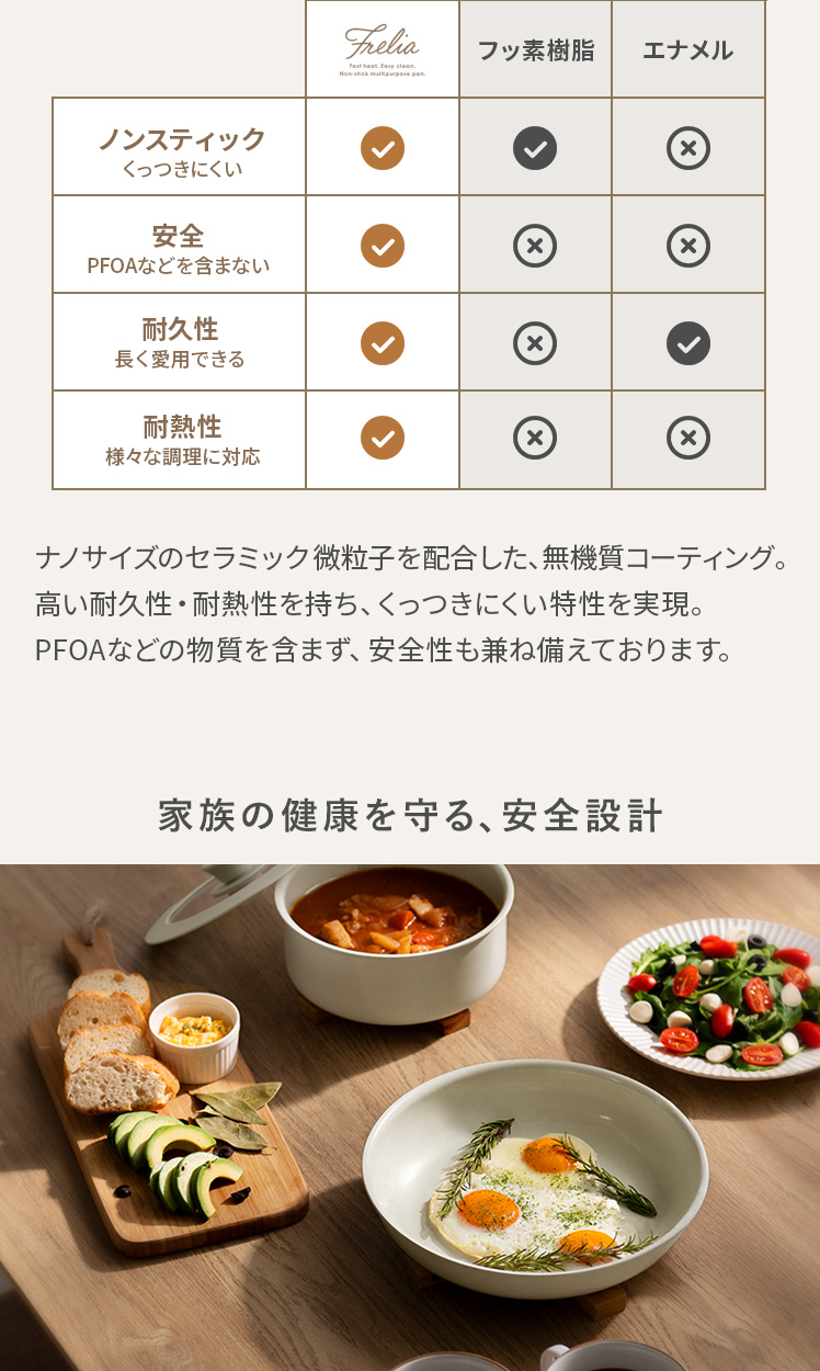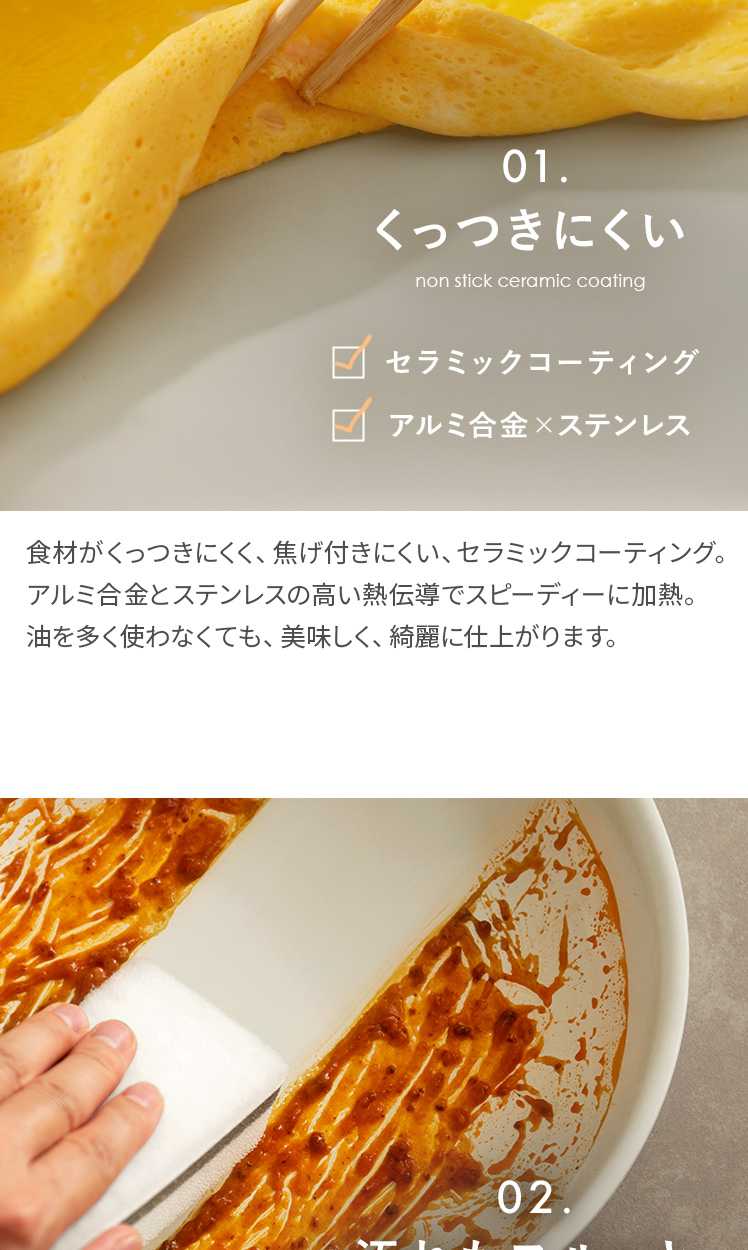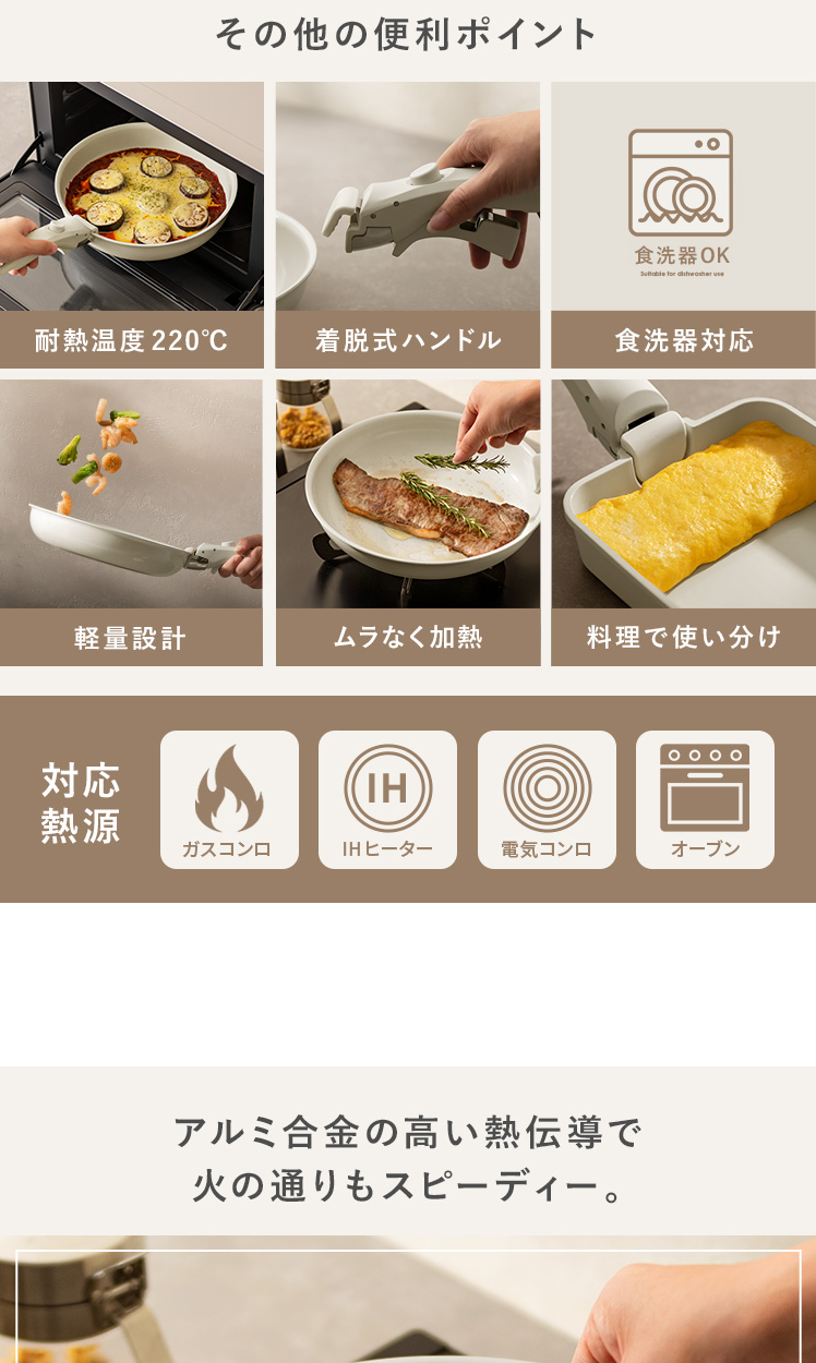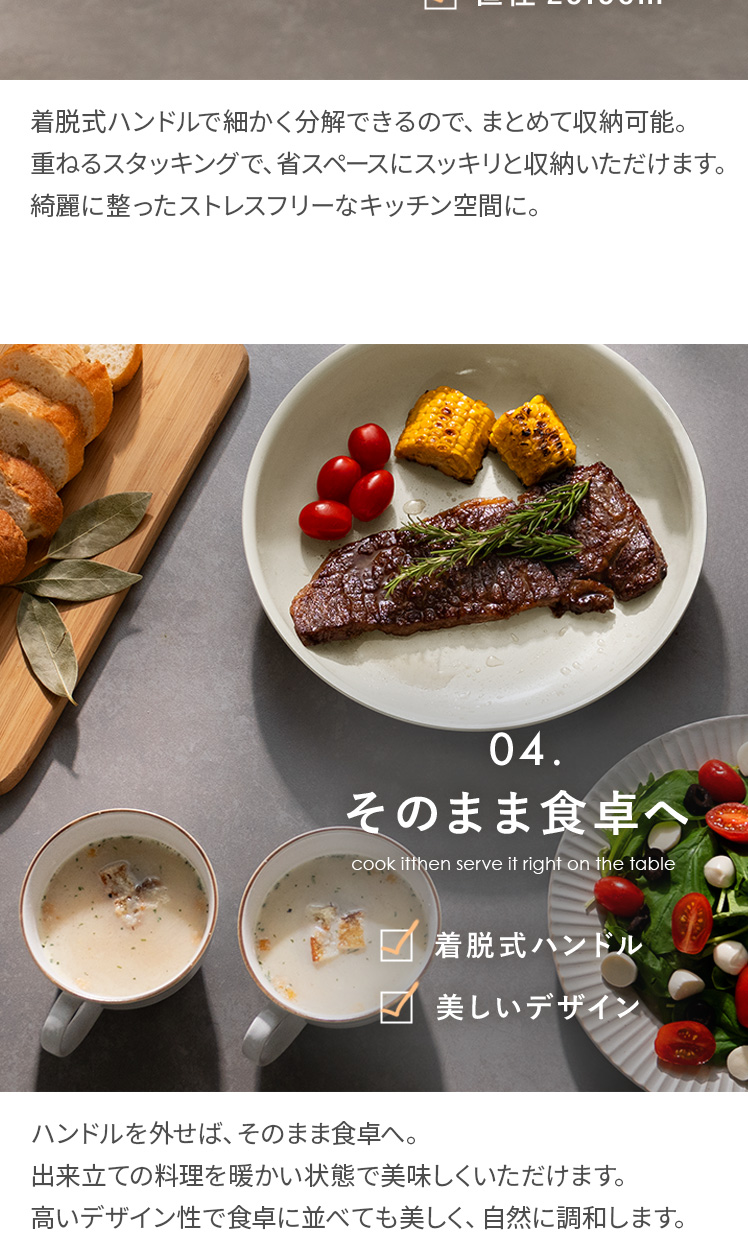 IH対応 ガス火対応 PFOAフリー ナノ無機セラミックコーティング 食洗器OK 脱着式ハンドル 軽量