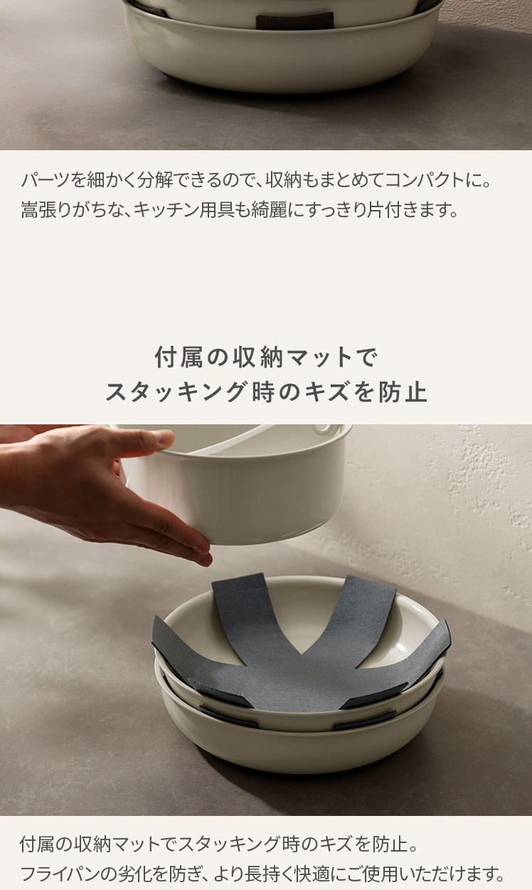 | 備考 | ※熱伝導率が高いので弱火・中火でのご使用を推奨します。 ※収納マットは鍋敷きとしてはお使いいただけません。 |