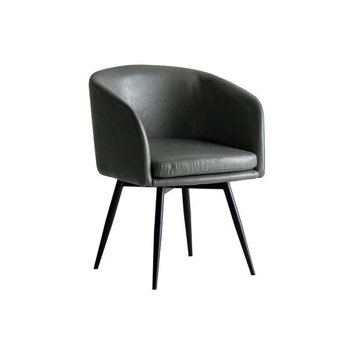 回転式 椅子 アームチェア 肘付き 着脱式クッション PUレザー おしゃれ シンプル モダン スチール グ 黒 ブラック グレー
