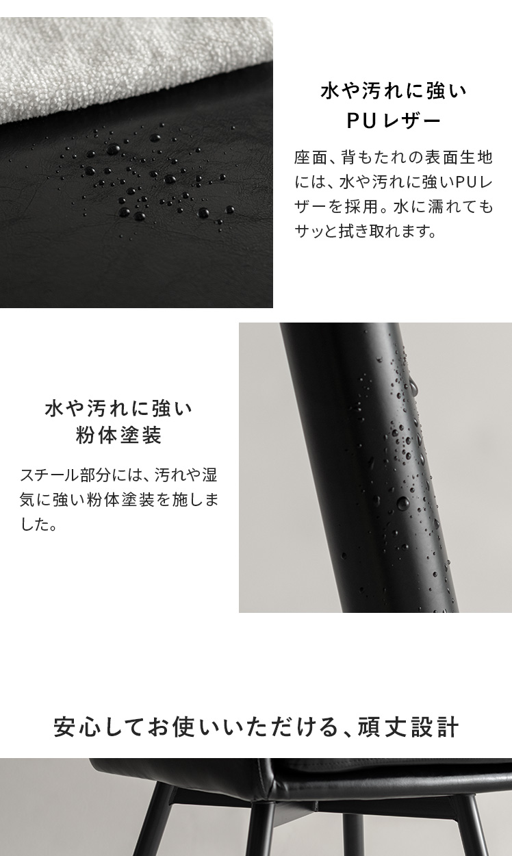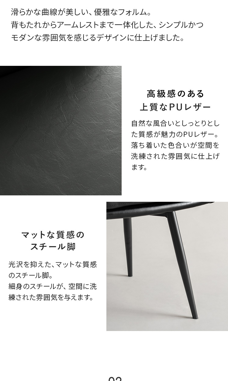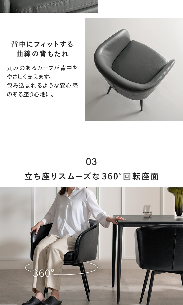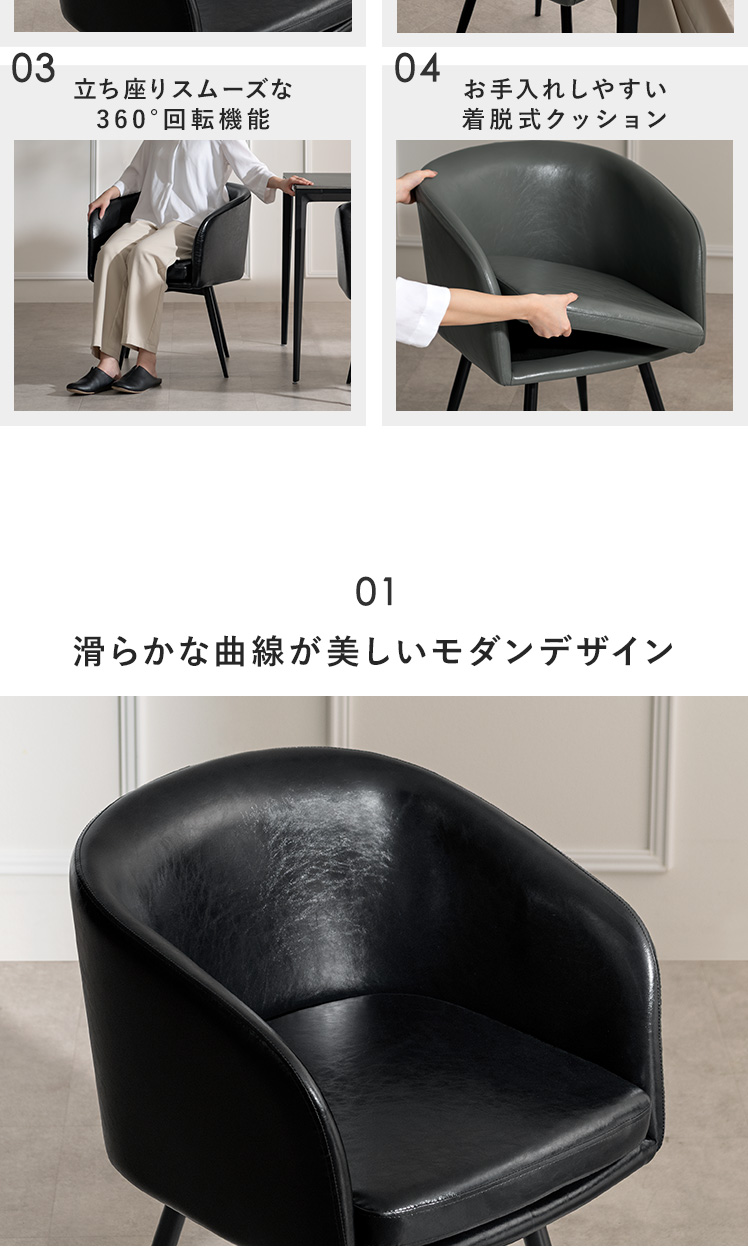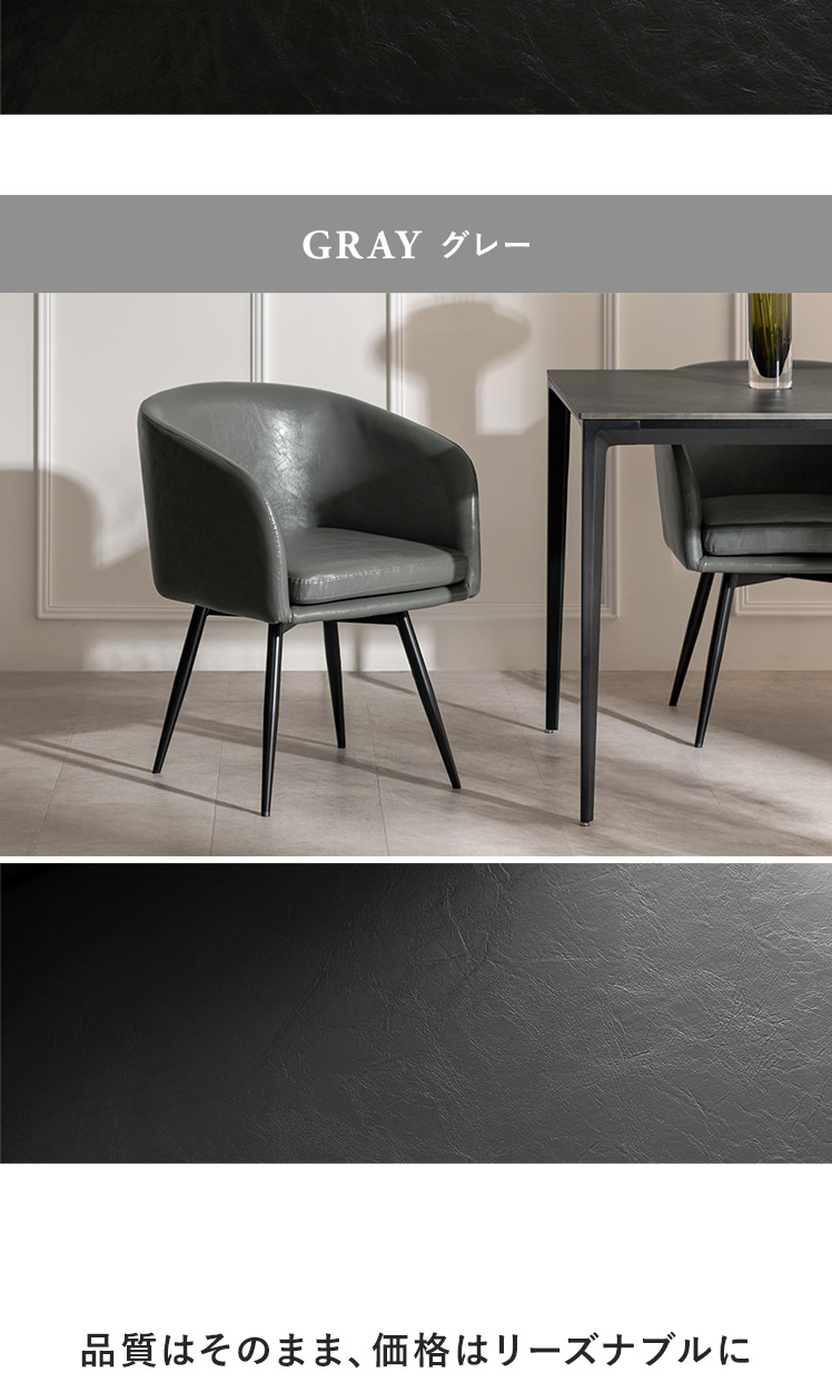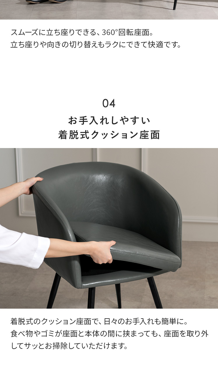 回転式 椅子 アームチェア 肘付き 着脱式クッション PUレザー おしゃれ シンプル モダン スチール グ 黒 ブラック グレー【5%OFFクーポン対象|公式なら毎日お得】