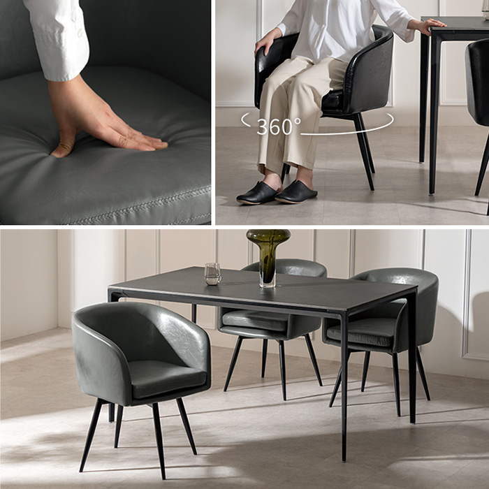 ダイニングチェア 2人掛け 2脚セット 360°回転 回転 座面取り外し ダイニング椅子 椅子 アームチェア チェア チェアー イス 肘付き椅子 食卓椅子 着脱式 おしゃれ シンプル モダン ナチュラル PUレザー ゆったり 組み立て簡単 スチール ホテルライク リビング 黒 ブラック グレー