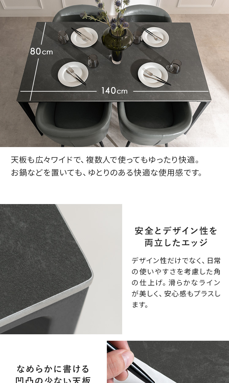 | テーブルサイズ | 約幅140×奥行き80×高さ74cm |
