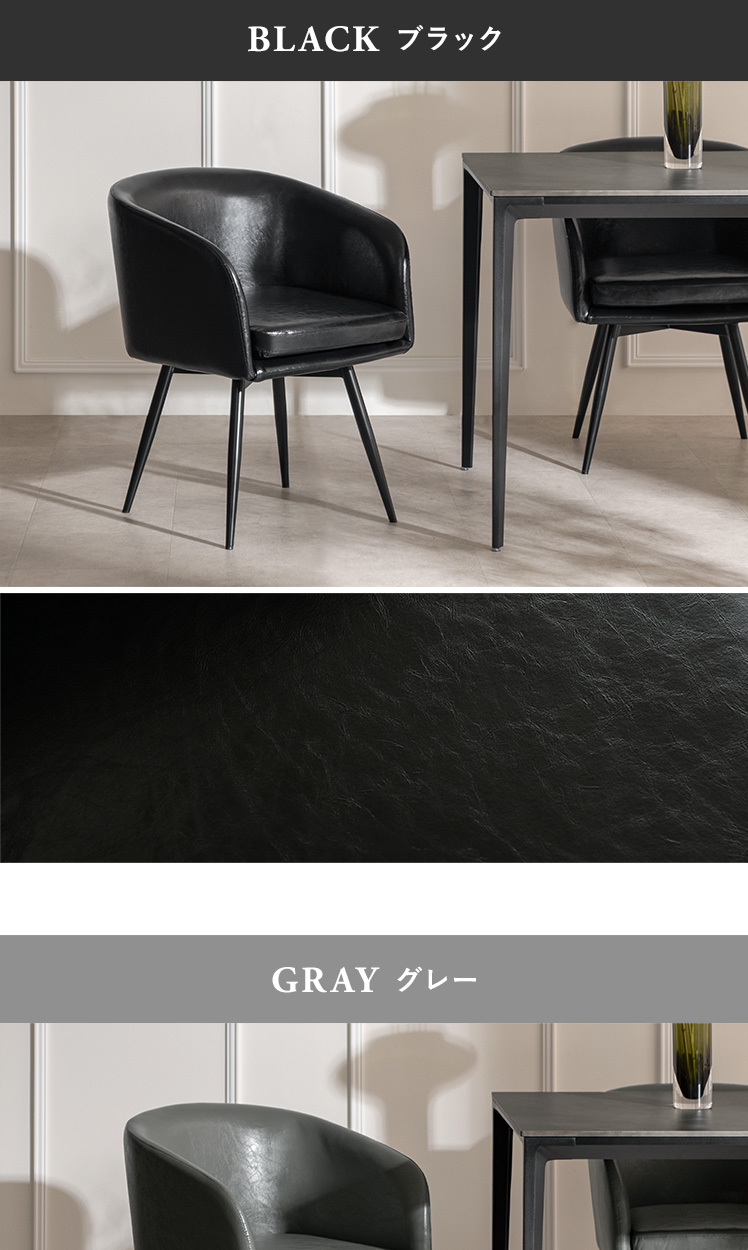 回転式 椅子 PUレザー おしゃれ シンプル モダン スチール グ 黒 ブラック グレー【5%OFFクーポン対象|公式なら毎日お得】