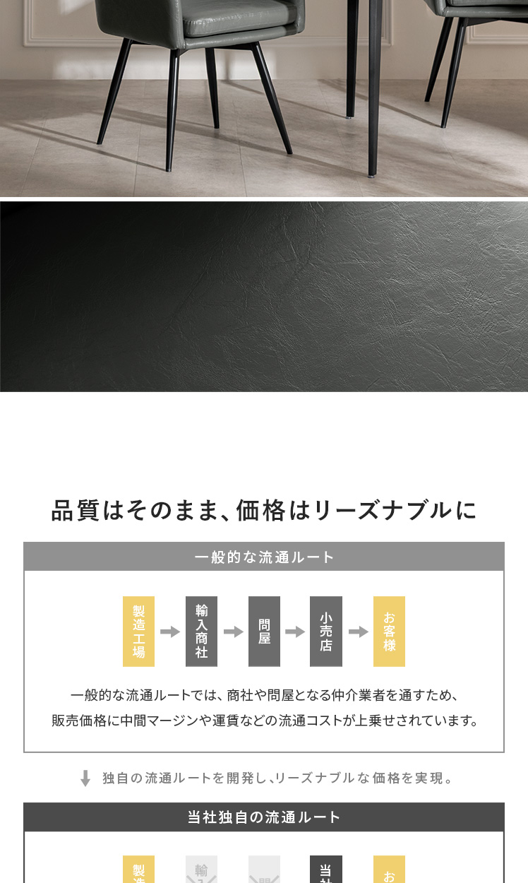 | 材質(チェア) | 合成皮革(PU)、スチール |