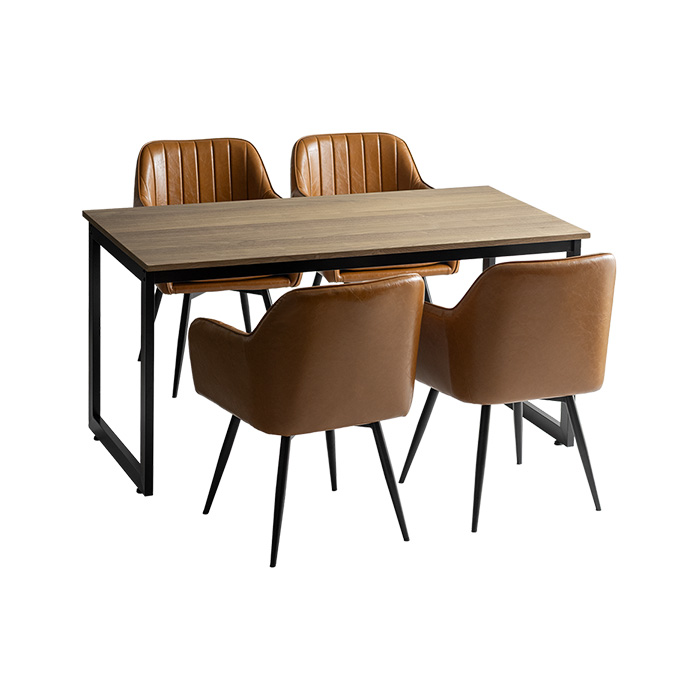 天然木テーブル×レザーチェア 木の温もりが映える、表情豊かなデザイン