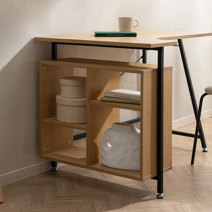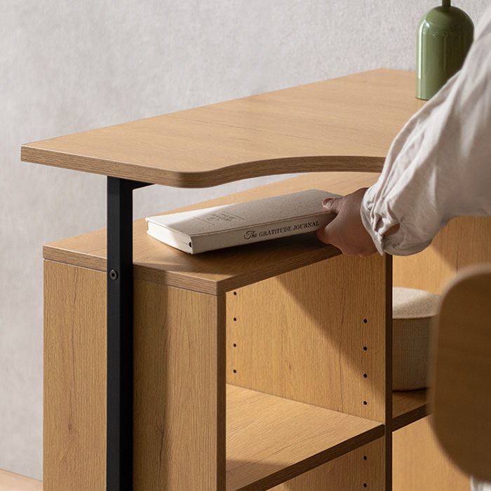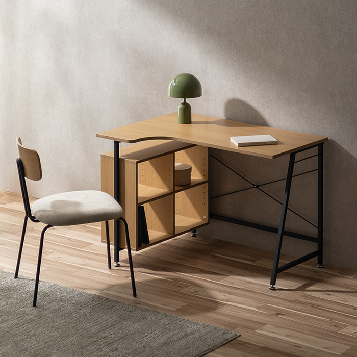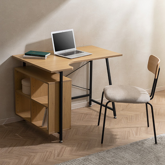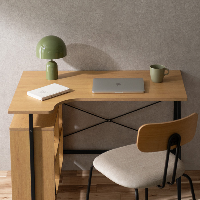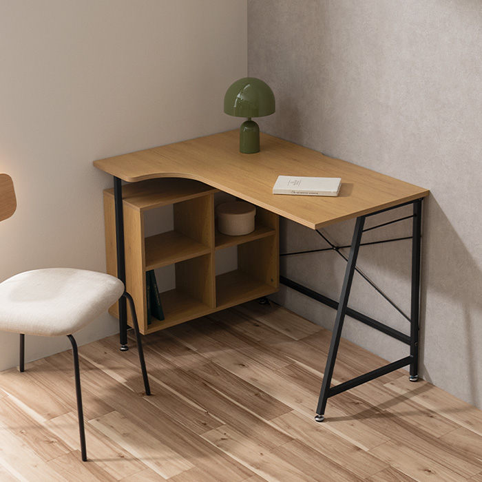 コンパクトL字デスク Tovi〔トヴィ〕/作業がはかどるL字型天板に、便利なオープン収納を備えたコンパクトデスク“Tovi(トヴィ)”。圧迫感を抑えた設計で、空間に軽やかな抜け感を添えます。