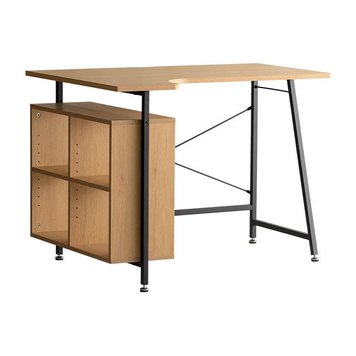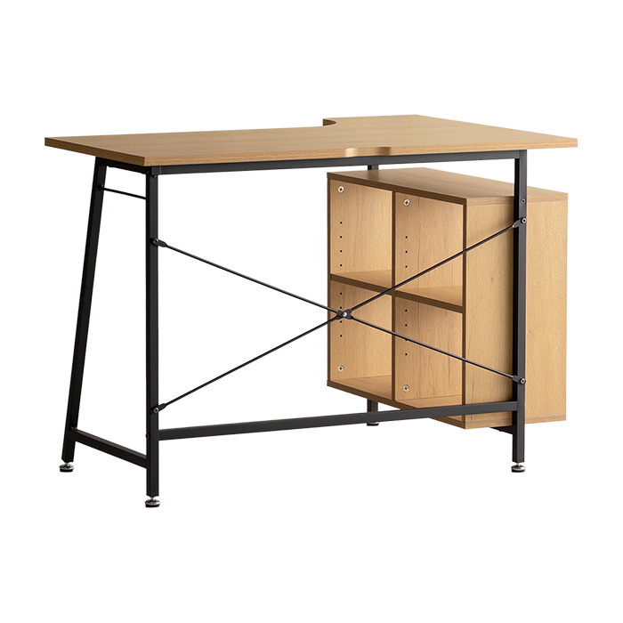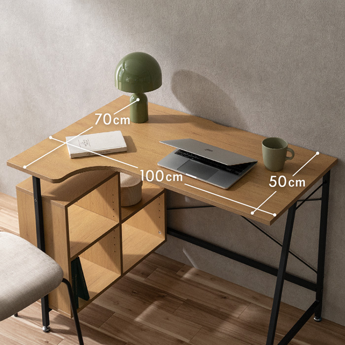 パソコンデスク L字 100cm幅 コンパクト 机 省スペース コーナー おしゃれ デスク 机 コーナーデスク 書斎机 テレワーク PCデスク 学習デスク 学習机 勉強机 大人 テーブル 収納 オープン収納 ワークデスク ラック付き 北欧 作業机 シンプル コードスリット 木目調 クロスバー アジャスター ナチュラル ブラック