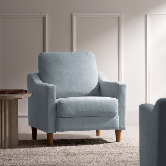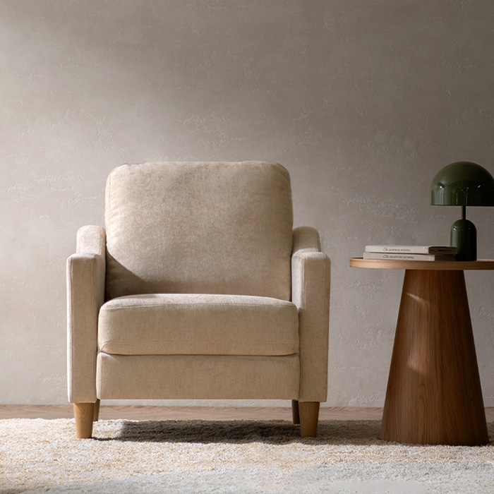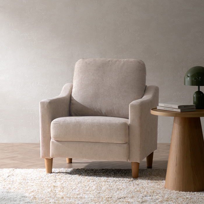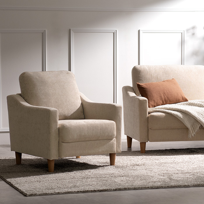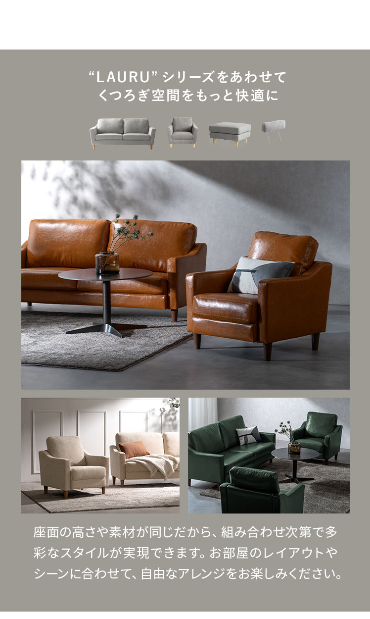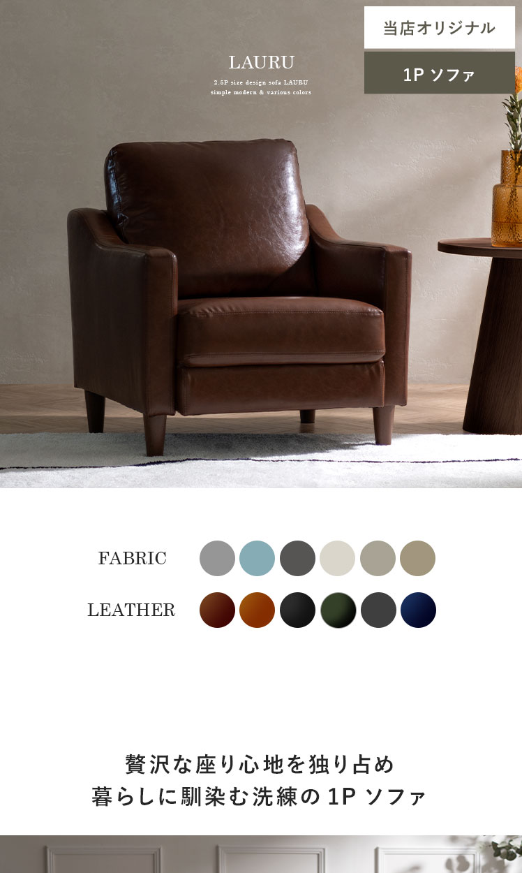 1Pデザインソファ LAURU〔ラウル〕組み立てタイプ/無駄のないシンプルなデザインで、どんな空間にも馴染むソファ。ウレタン配合のクッションが程よい弾力で体を支え、やわらかさと安定感を両立。見た目も座り心地も、暮らしにちょうどいいバランスに仕上げました。